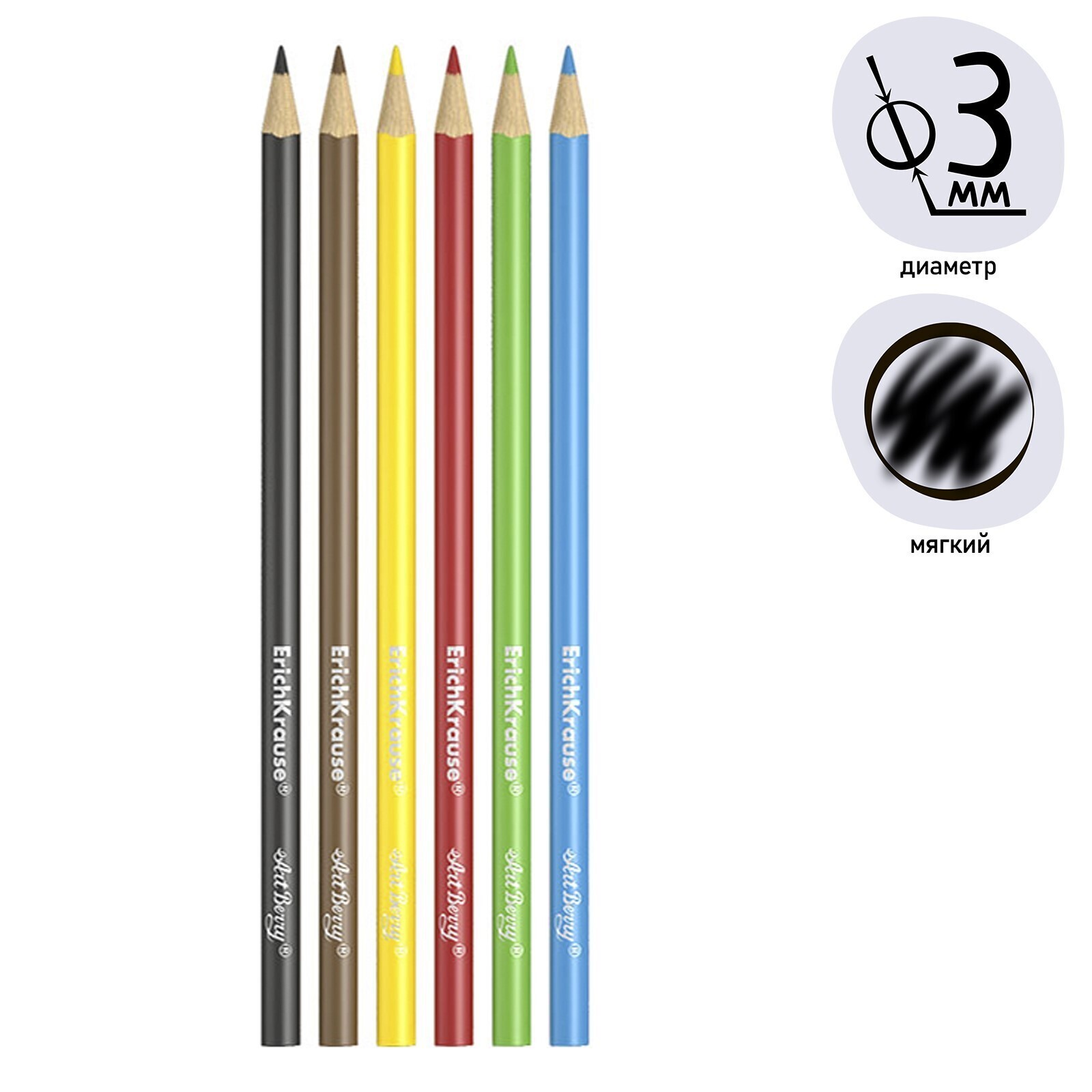 Карандаши 6 цветов ErichKrause ArtBerry, 3 мм, трёхгранные, пластиковые