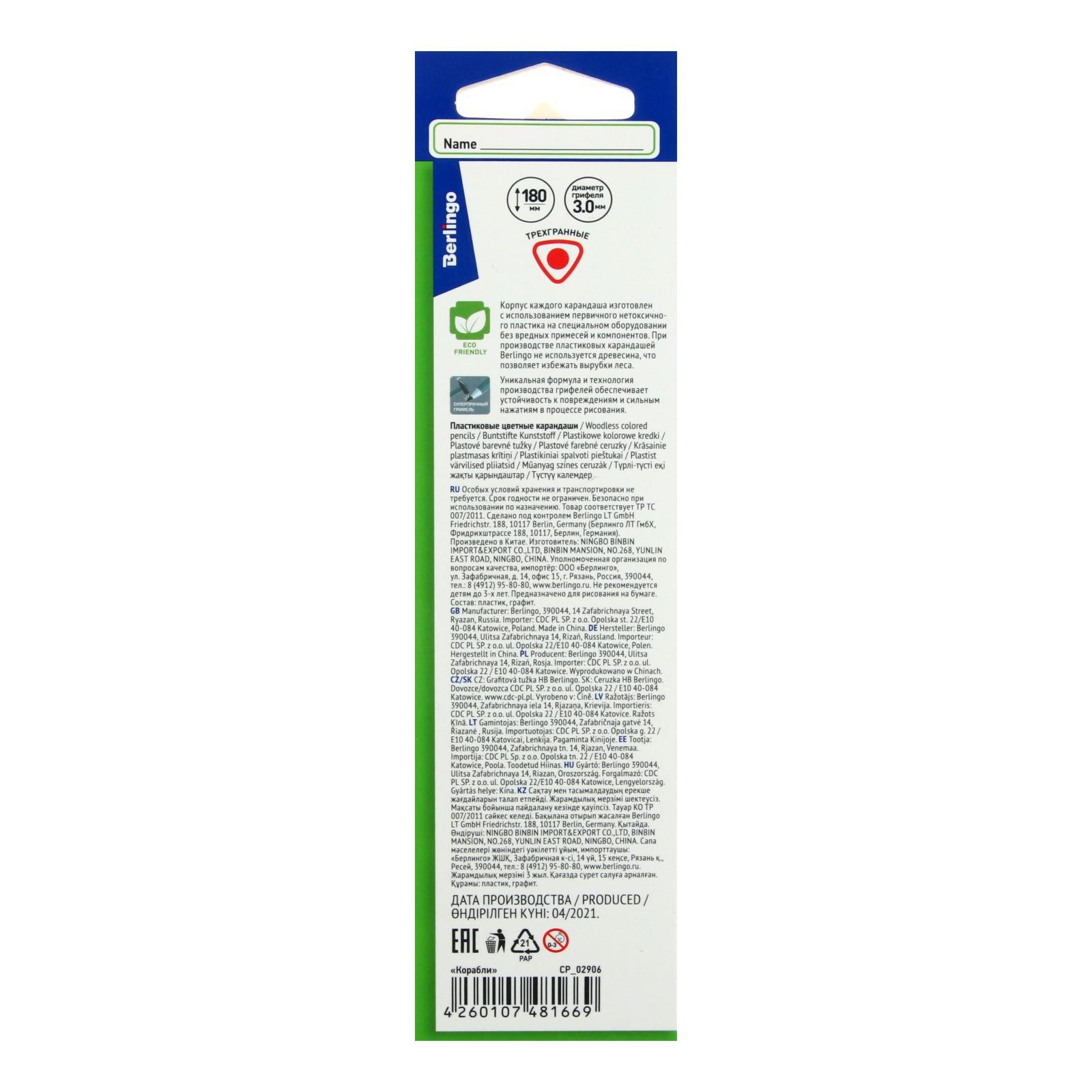 Карандаши цветные пластиковые с заточенным грифелем. Эргономичный трехгранный корпус. Мягкий яркий грифель диаметром 3мм. Грифель не ломается при падении. Гибкий корпус. В подарок чернографитный карандаш Berlingo. Яркие насыщенные цвета. Штрихи мягко ложатся на бумагу. Карандаши легко затачиваются. Упакованы в картонную коробку с европодвесом.