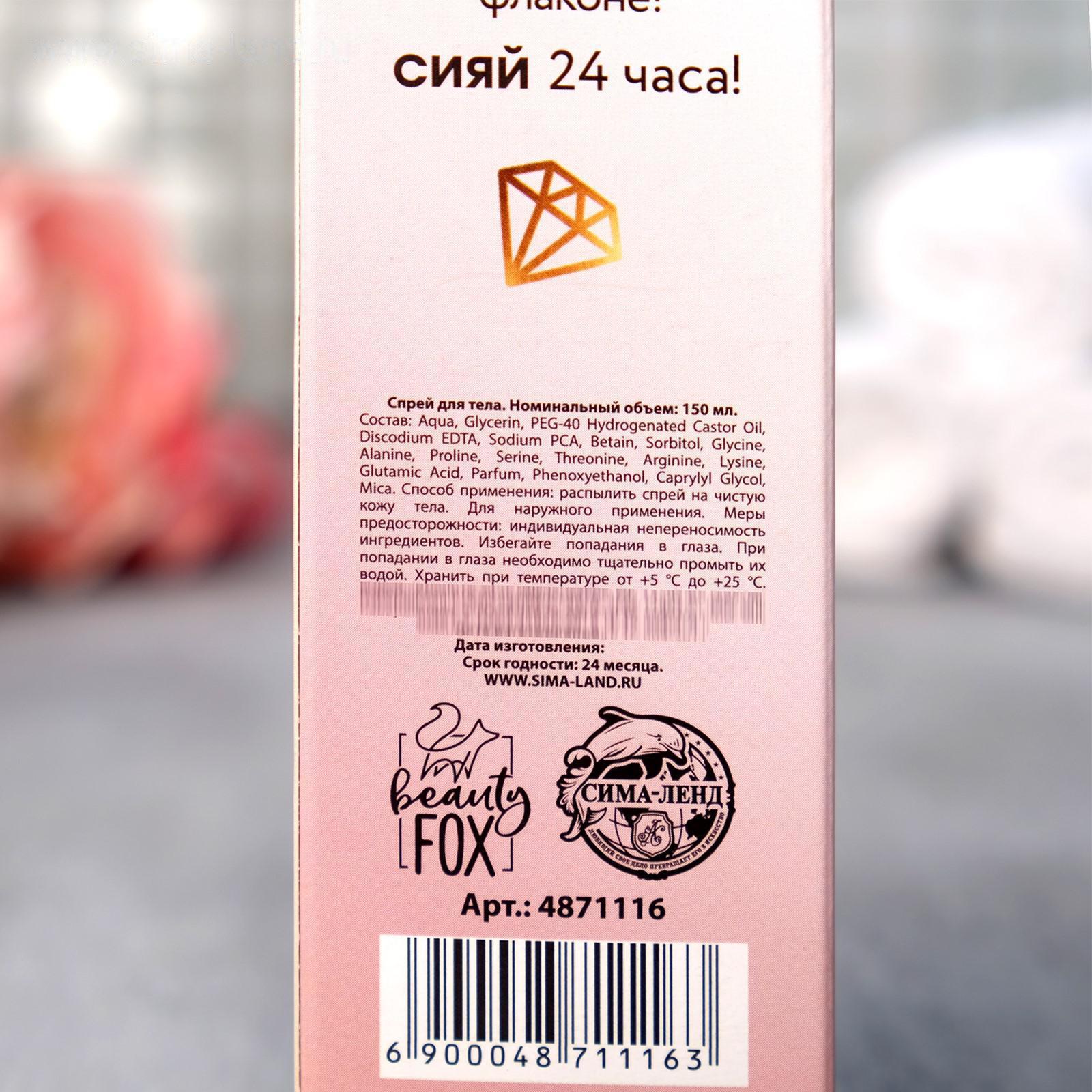 Мерцающий спрей для тела Glow diamond, кокос, 150 мл