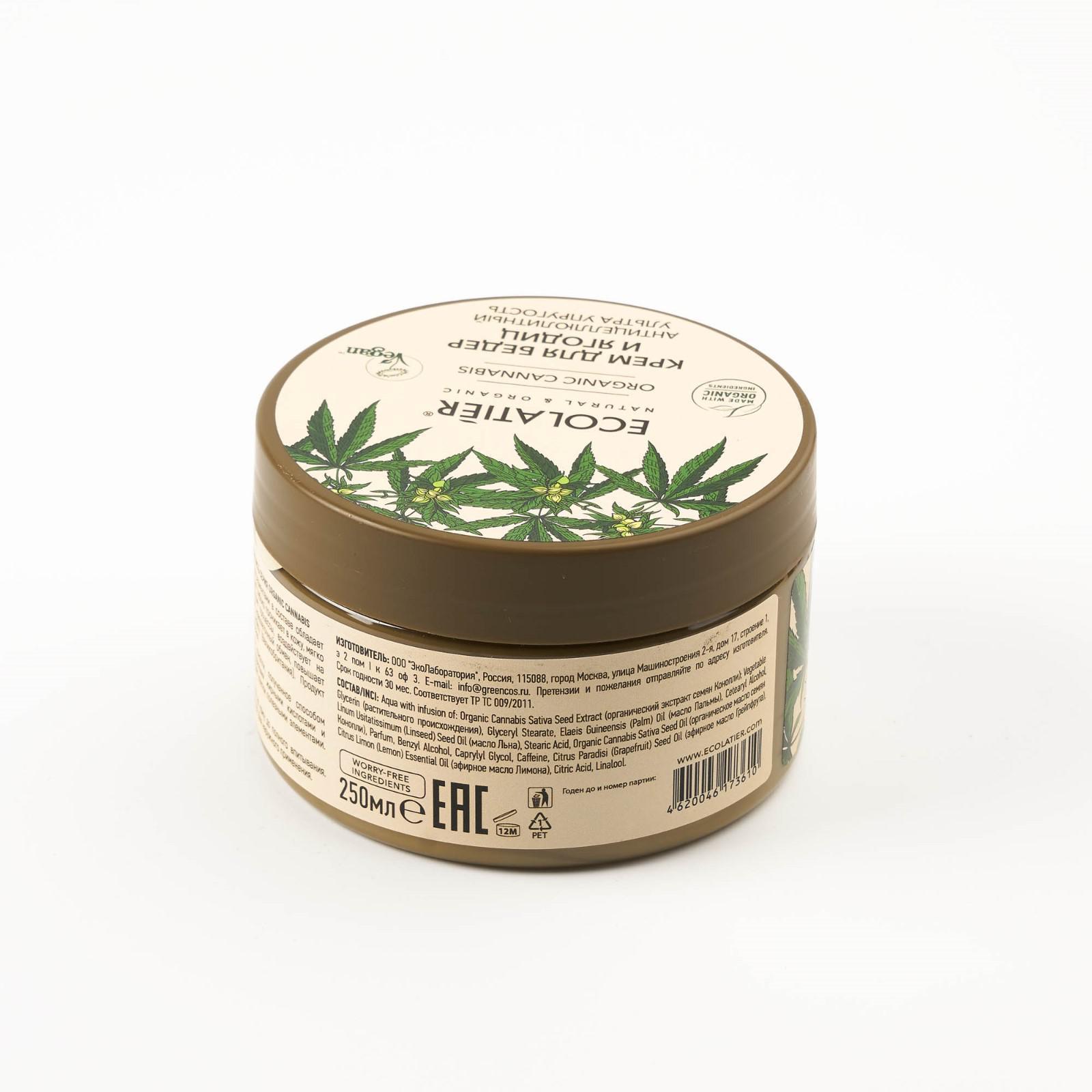 Крем для тела Ecolatier Organic Cannabis с активными ингредиентами в составе обладает антицеллюлитным эффектом. При нанесении и легком массаже насыщенный глубоко проникает в кожу, мягко разогревает, усиливает кровообращение и лимфодренажные процессы, воздействует на проблемные зоны тела – бедра, ягодицы, живот. Улучшает межклеточный обмен, повышает эластичность кожи. Соответствует требованиям Vegan Society (Великобритания). Продукт содержит более 99% ингредиентов растительного происхождения.