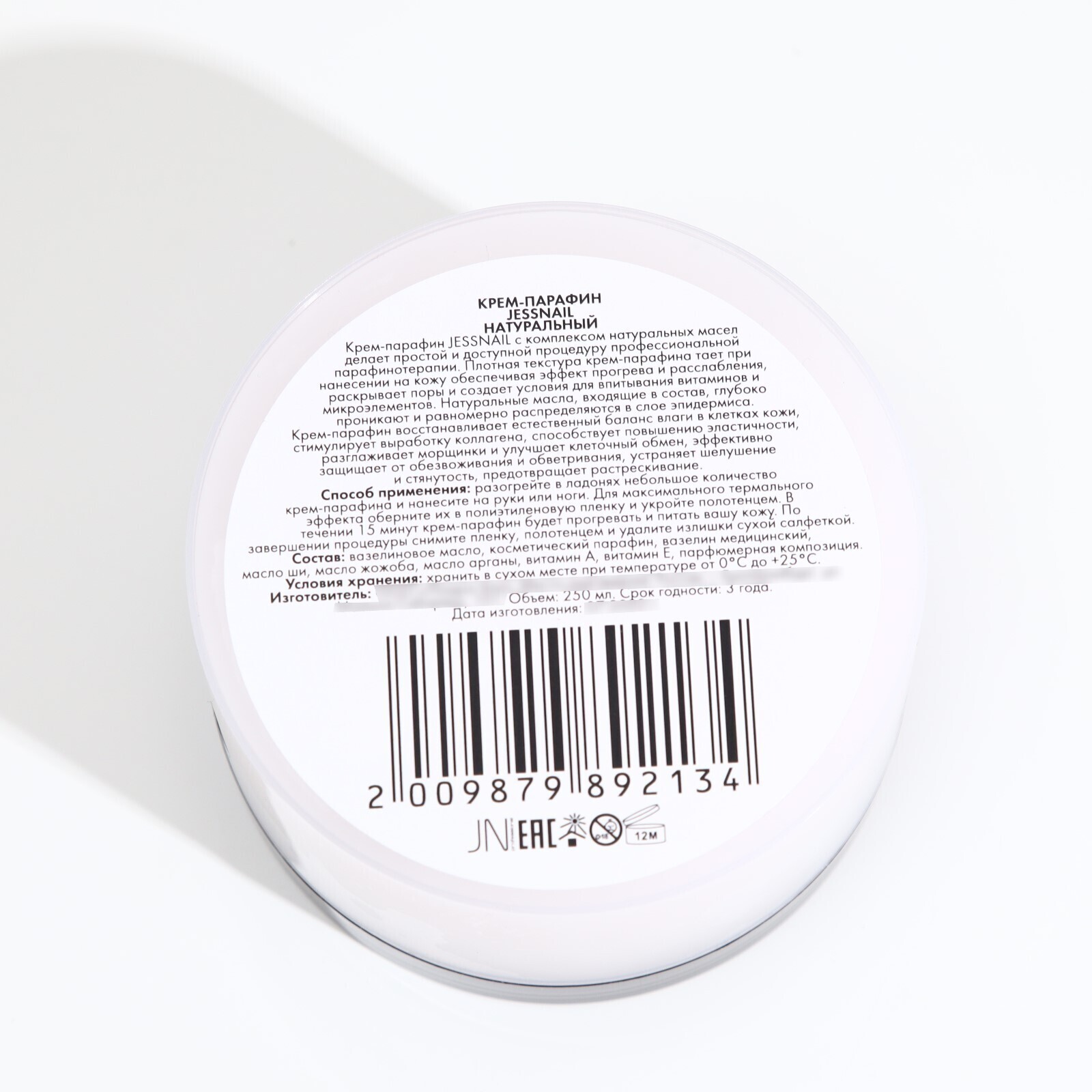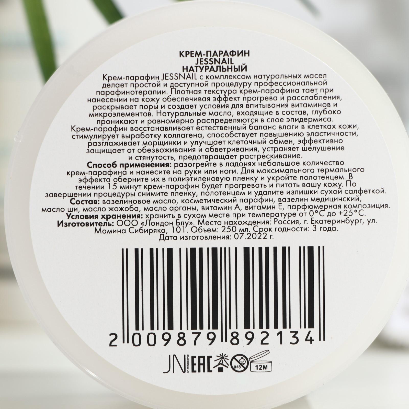 Крем-парафин JessNail, с натуральным маслом Ши, Арганы, Жожоба, 250 мл