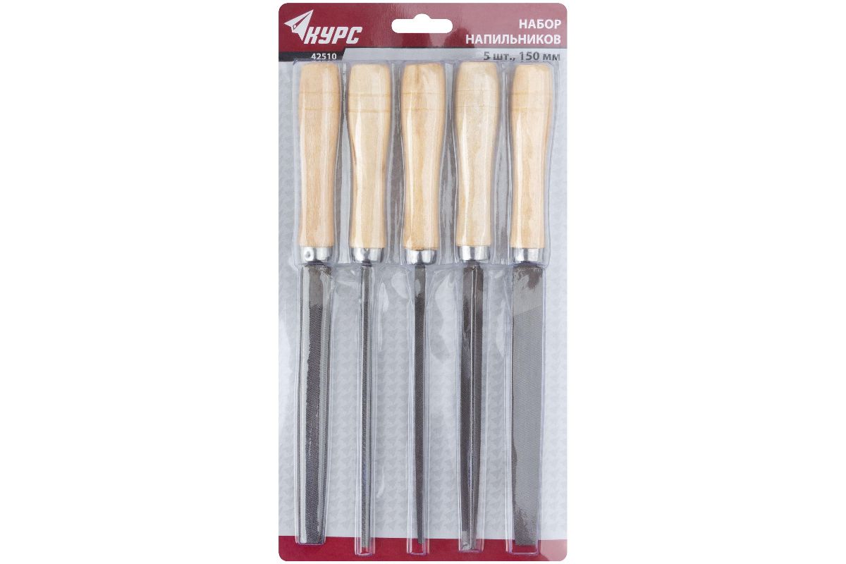 Напильник КУРС 42510 набор 5шт деревянная ручка 150мм Напильники набор 5шт, деревянная ручка, 150 мм