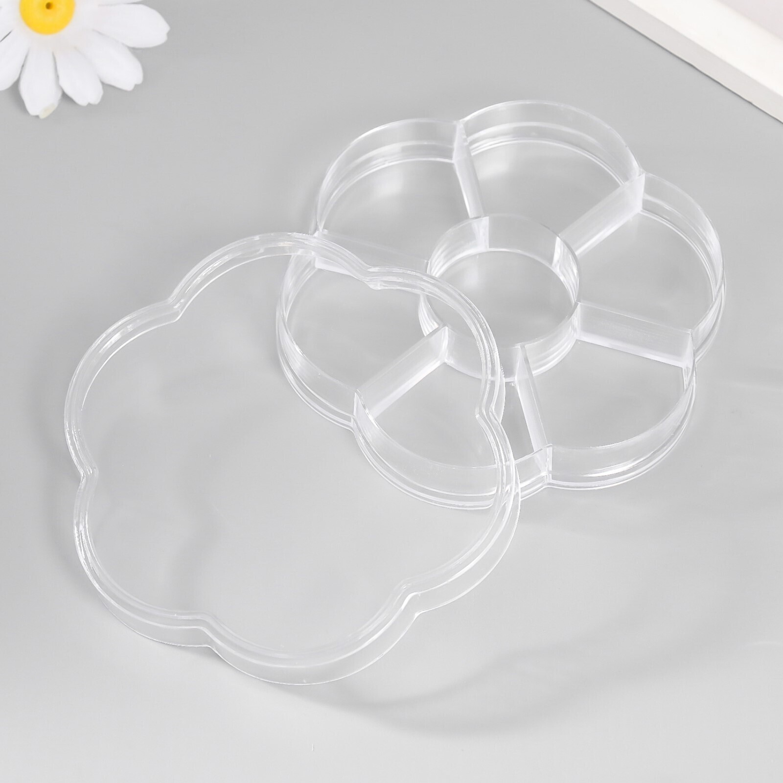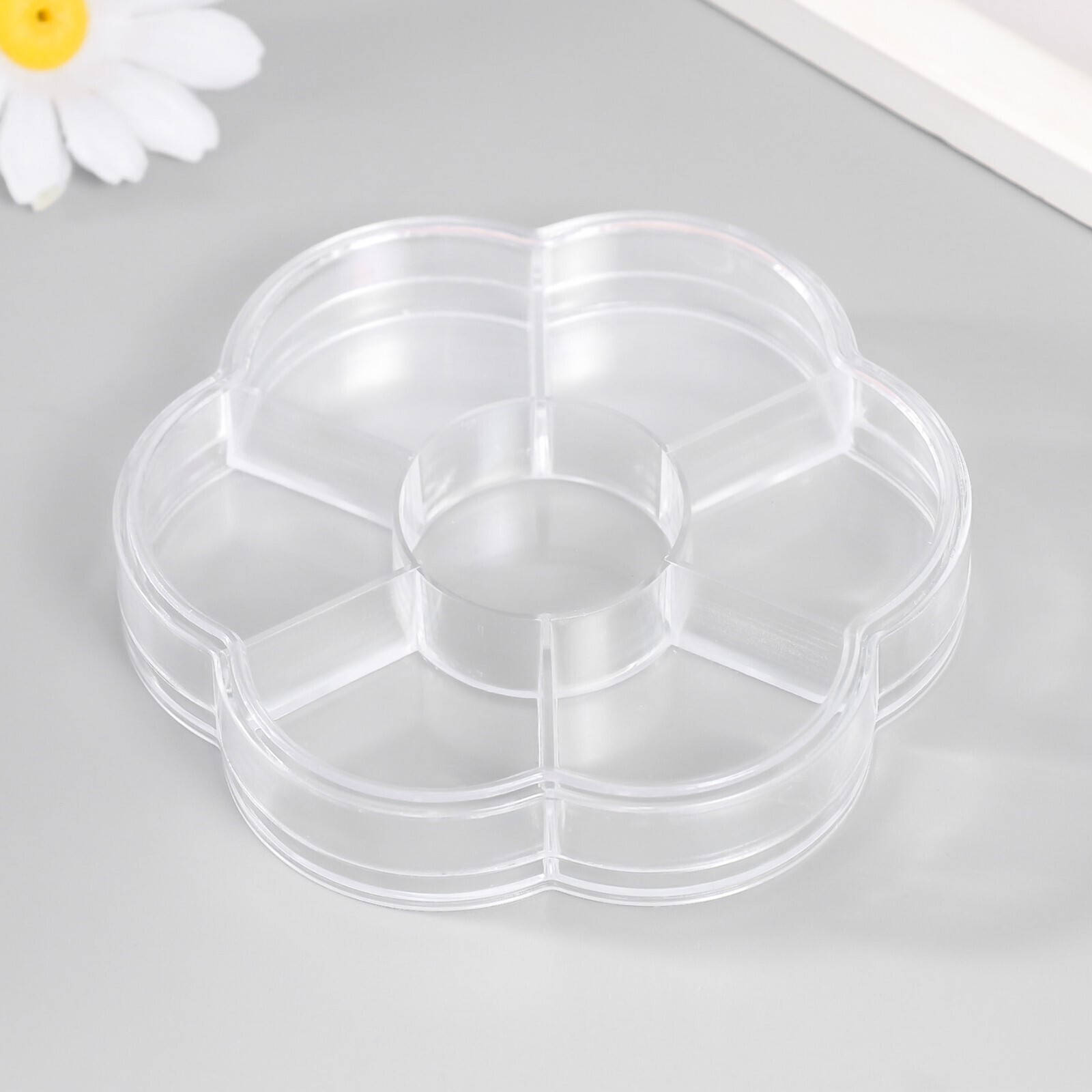 Шкатулка пластик для мелочей "Цветок" прозрачная 7 отделений 10,3х10,3х1,8 см