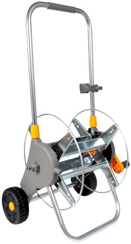 Завдяки збільшеній висоті котушки, яка досягає 750 мм, великим рифленим колесам та сталевій осі, котушку дуже легко переміщати дільницею. Спеціальна форма опорної рами та низький центр тяжіння забезпечують максимальну стабільність та перешкоджають падінню. Ідеально підходить для великих садових ділянок, просте та надійне рішення для переміщення та використання шлангів довжиною до 60 м. Виготовлена із високоякісної оцинкованої сталі, котушка витримує високі навантаження протягом тривалого часу.