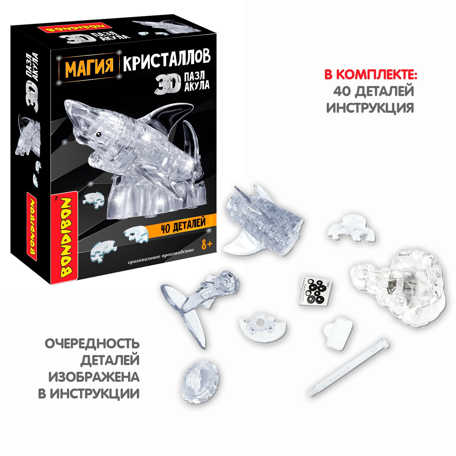 Развивающий 3Д пазл BONDIBON магия кристаллов Акула 40 деталей ВВ5236