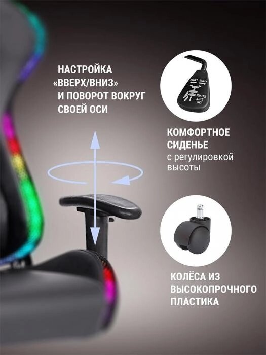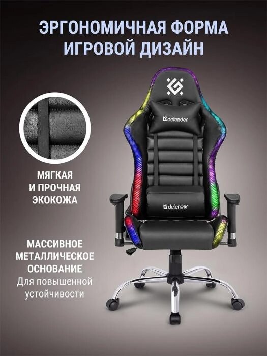 Игровое компьютерное геймерское кресло Defender стул на колесиках с RGB подсветкой