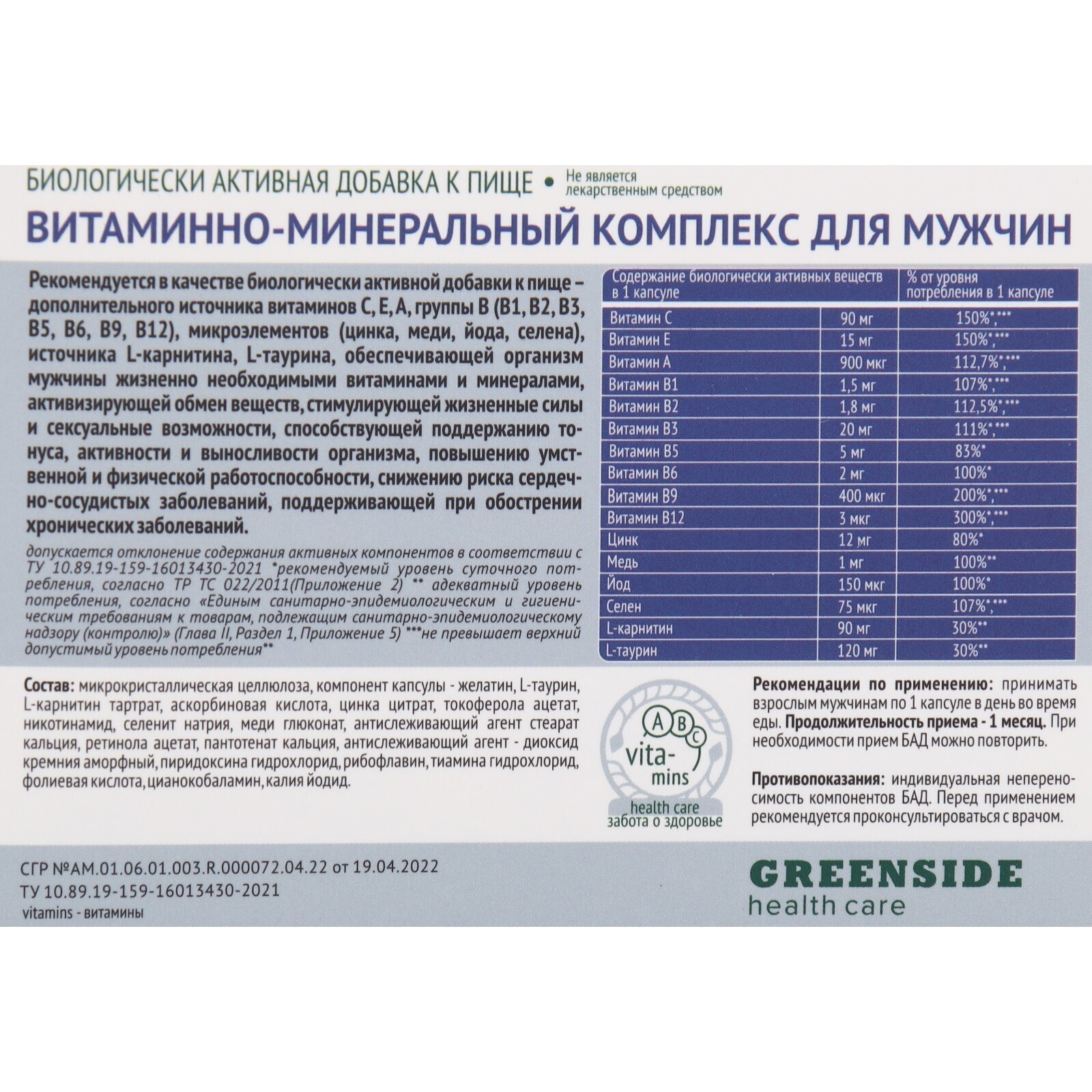ВИТАМИННО-МИНЕРАЛЬНЫЙ КОМПЛЕКС ДЛЯ МУЖЧИН