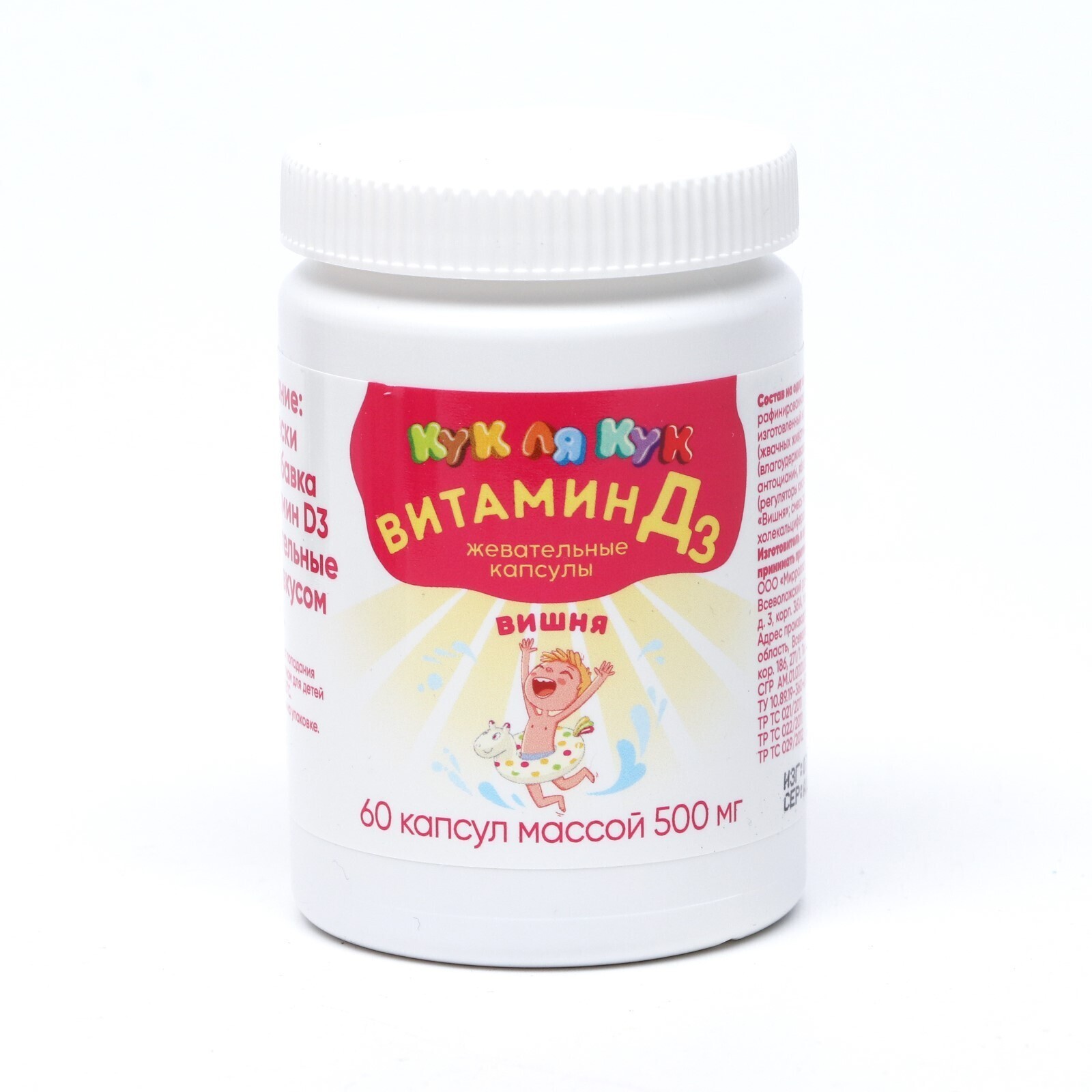 Состав: масло подсолнечное рафинированное; оболочка капсулы: желатин пищевой, изготовленный из шкур крупного рогатого скота (жвачных животных) /или свиней, декстроза, глицерин (влагоудерживающий агент), краситель натуральный - антоцианин, яблочная кислота, лимонная кислота (регуляторы кислотности), ароматизатор натуральный «Вишня»; смесь токоферолов (антиокислитель), холекальциферол (600МЕ/капс).