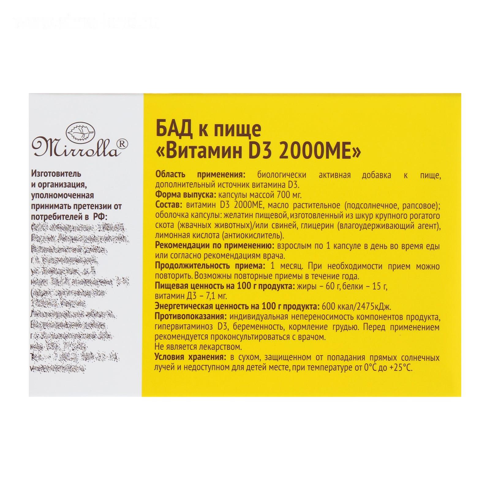 Витамин Д3 Mirrolla 2000МЕ, капсулы №30