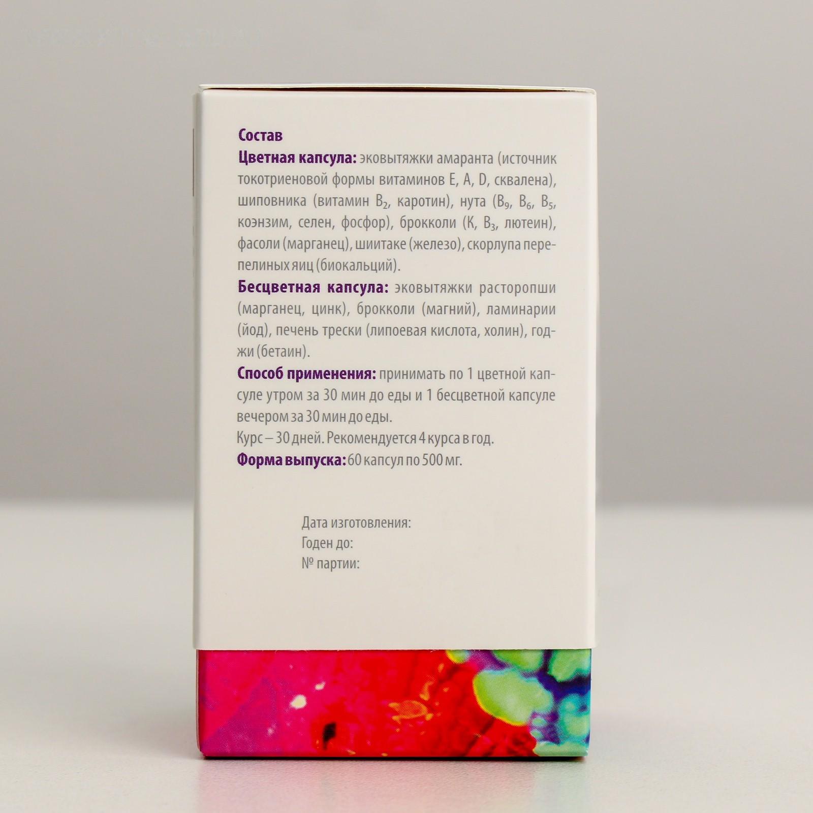 Способ применения: принимать по 1 цветной капсуле утром за 30 мин до еды и 1 бесцветной капсуле вечером за 30 мин до еды. Курс – 30 дней. Рекомендуется 4 курса в год.