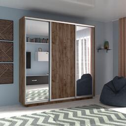 Шкаф-купе «Экспресс Медиум трио», 1800 × 450 × 2200 мм, 2 зеркала, цвет крафт табачный