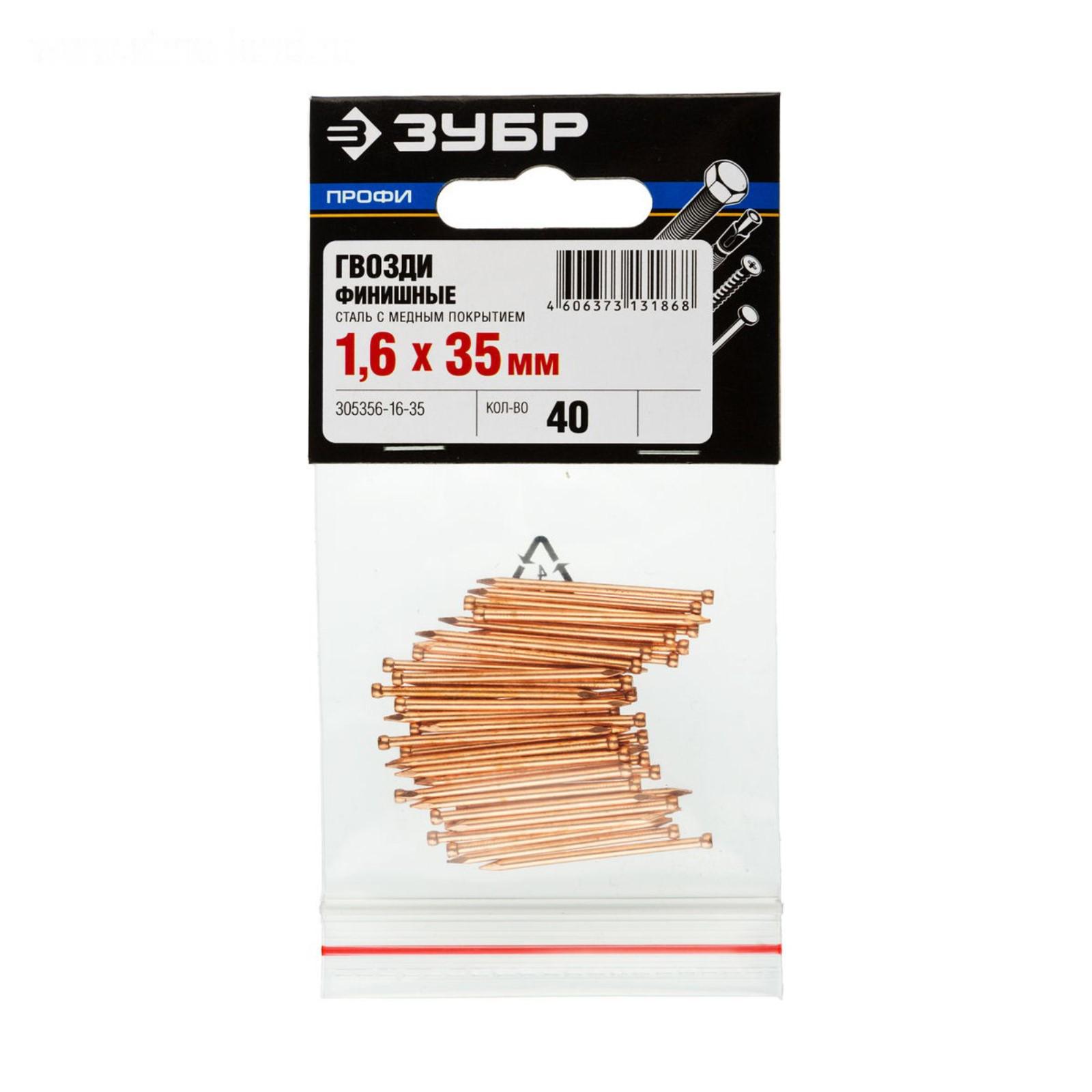 Гвозди финишные "ЗУБР Профессионал", 1.6х35 мм, омедненные, в упаковке 40 шт.