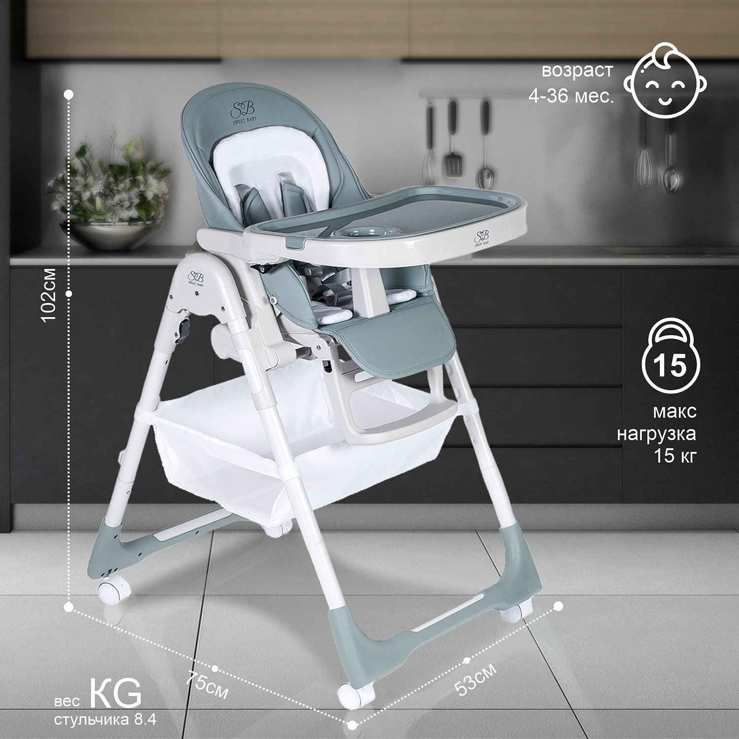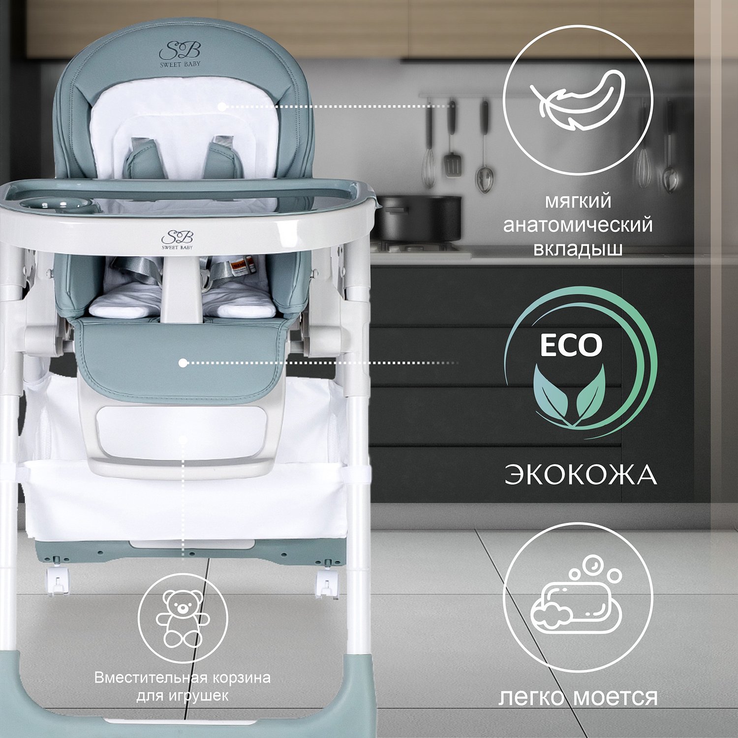 Стульчик для кормления Sweet Baby City Light Green 426718