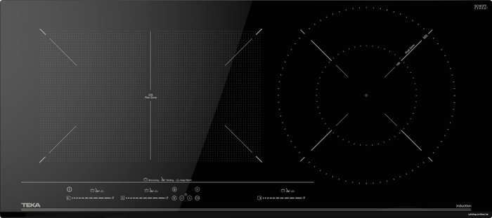• Подробная информация о конфорках 2 Flex зоны 188,5 X 235 мм (1,75/2,2 кВт)1 индукционная зона SuperZone XL Ø 320/180 мм (2,5/3,6 кВт)