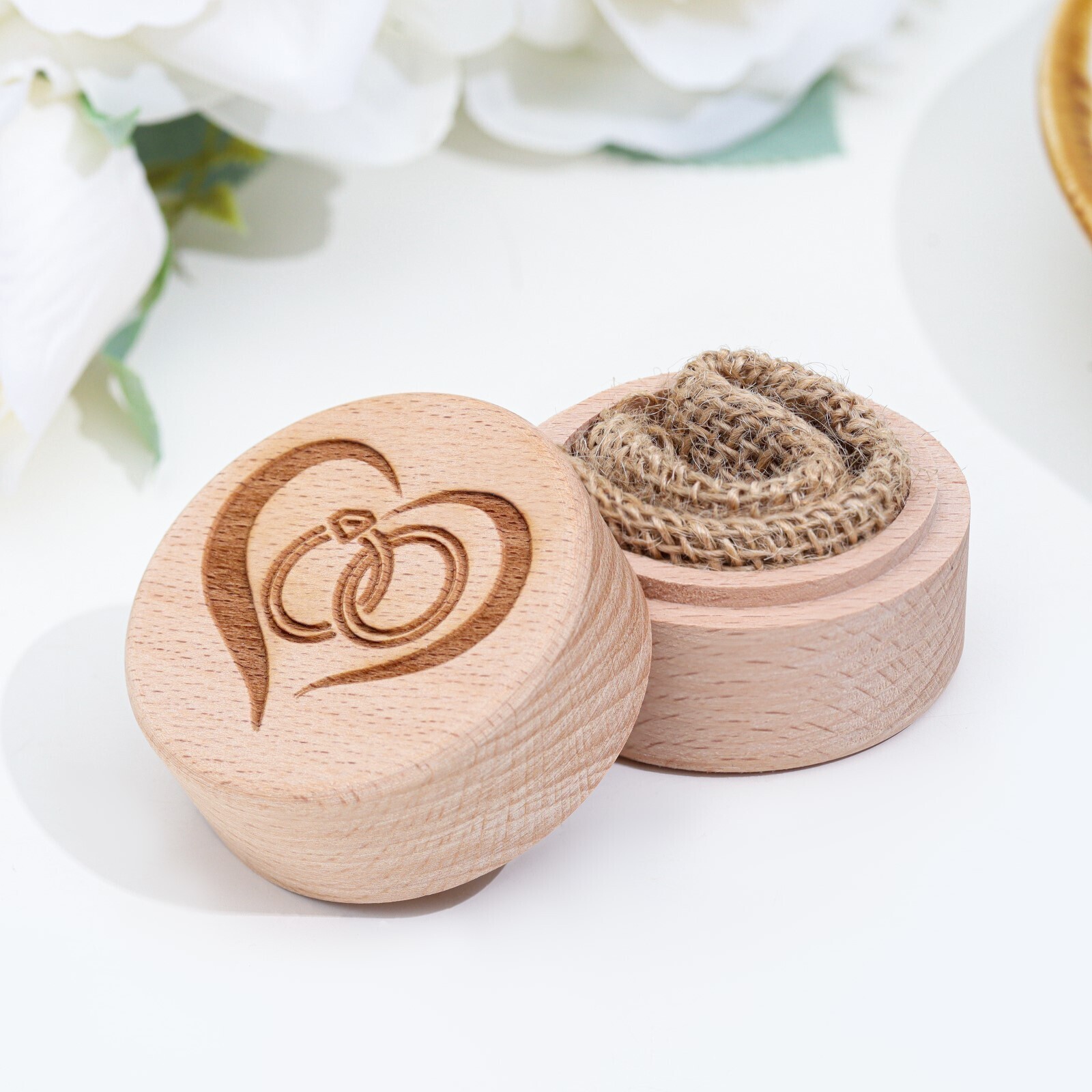 Шкатулка для колец "Сердце и кольца", бук