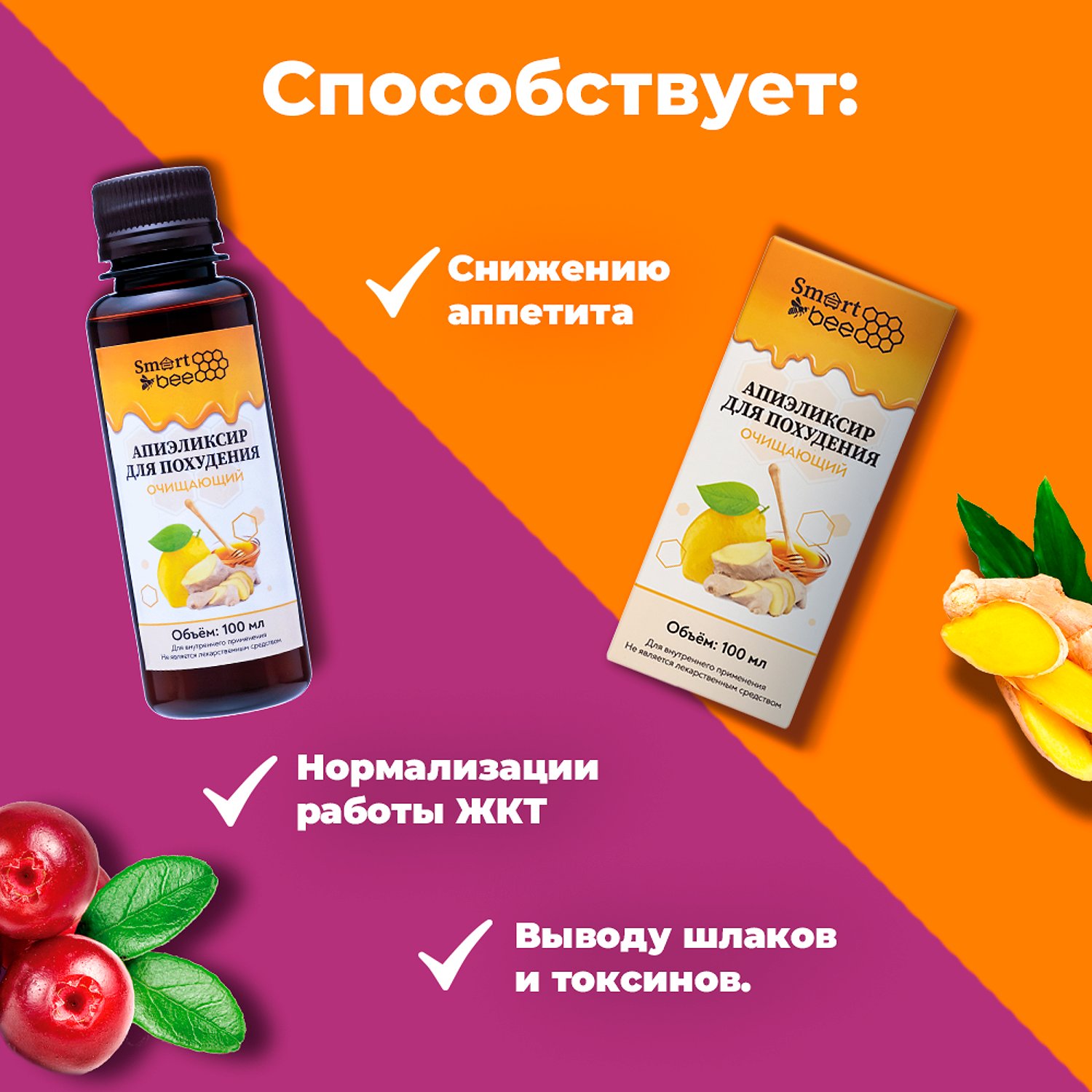 Апиэликсир Smart Bee для похудения очищающий 100 мл SB228042