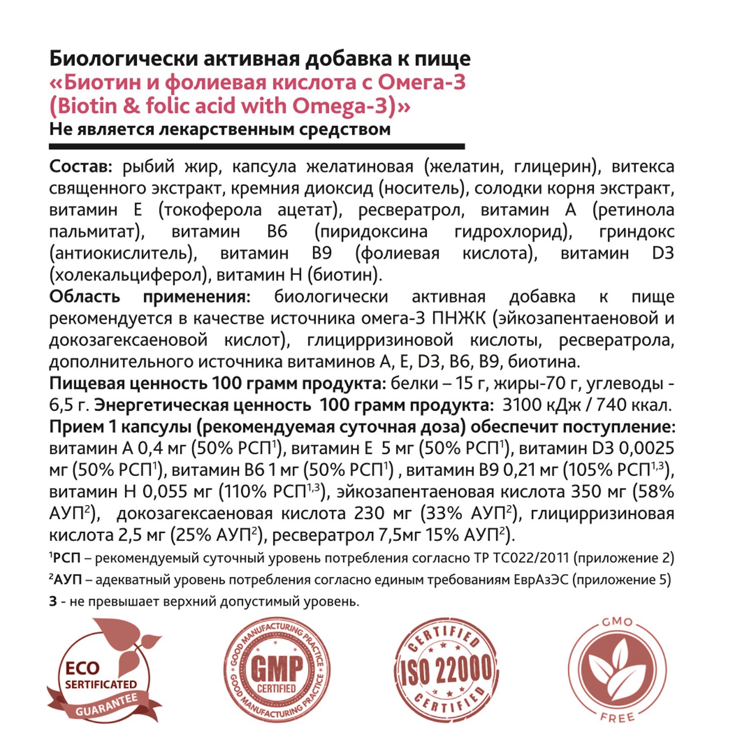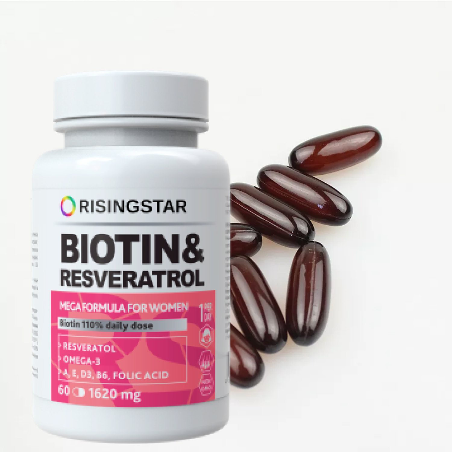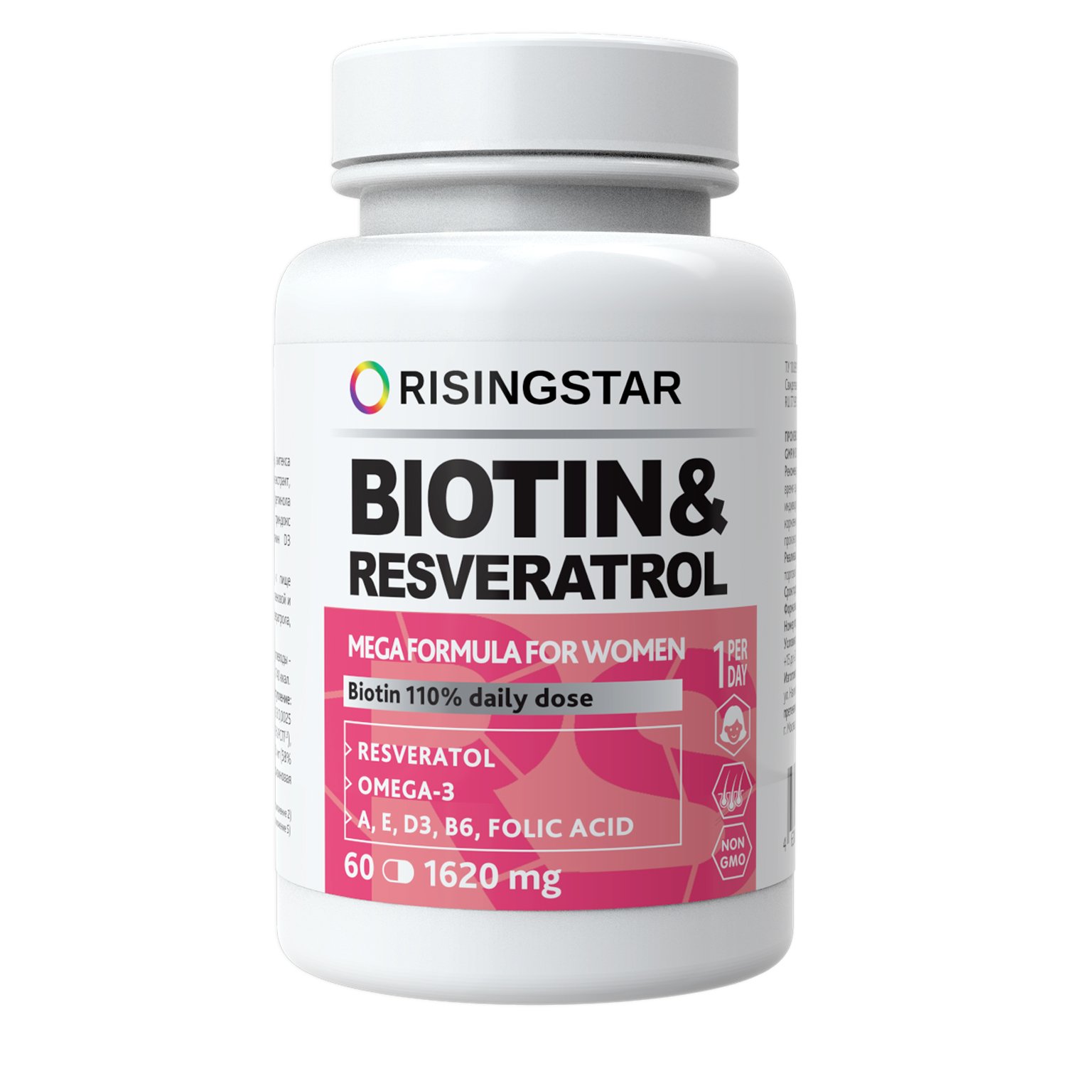 Биологически активная добавка Risingstar Биотин и фолиевая кислота с Омега-3 60капсул 15761584