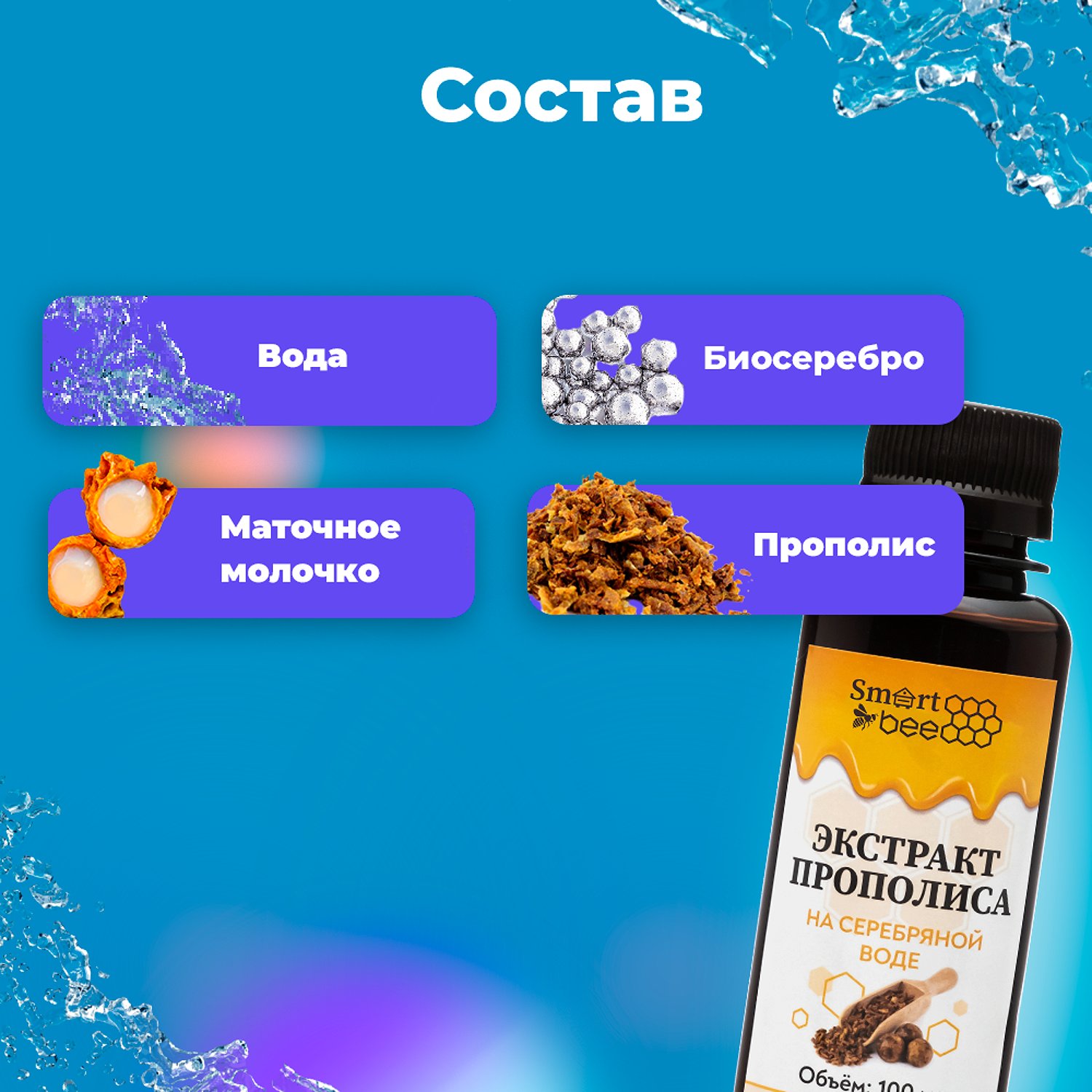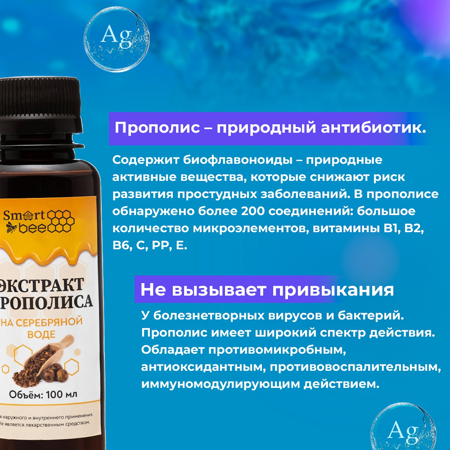 Экстракт прополиса Smart Bee на серебряной воде 100 мл SB228007