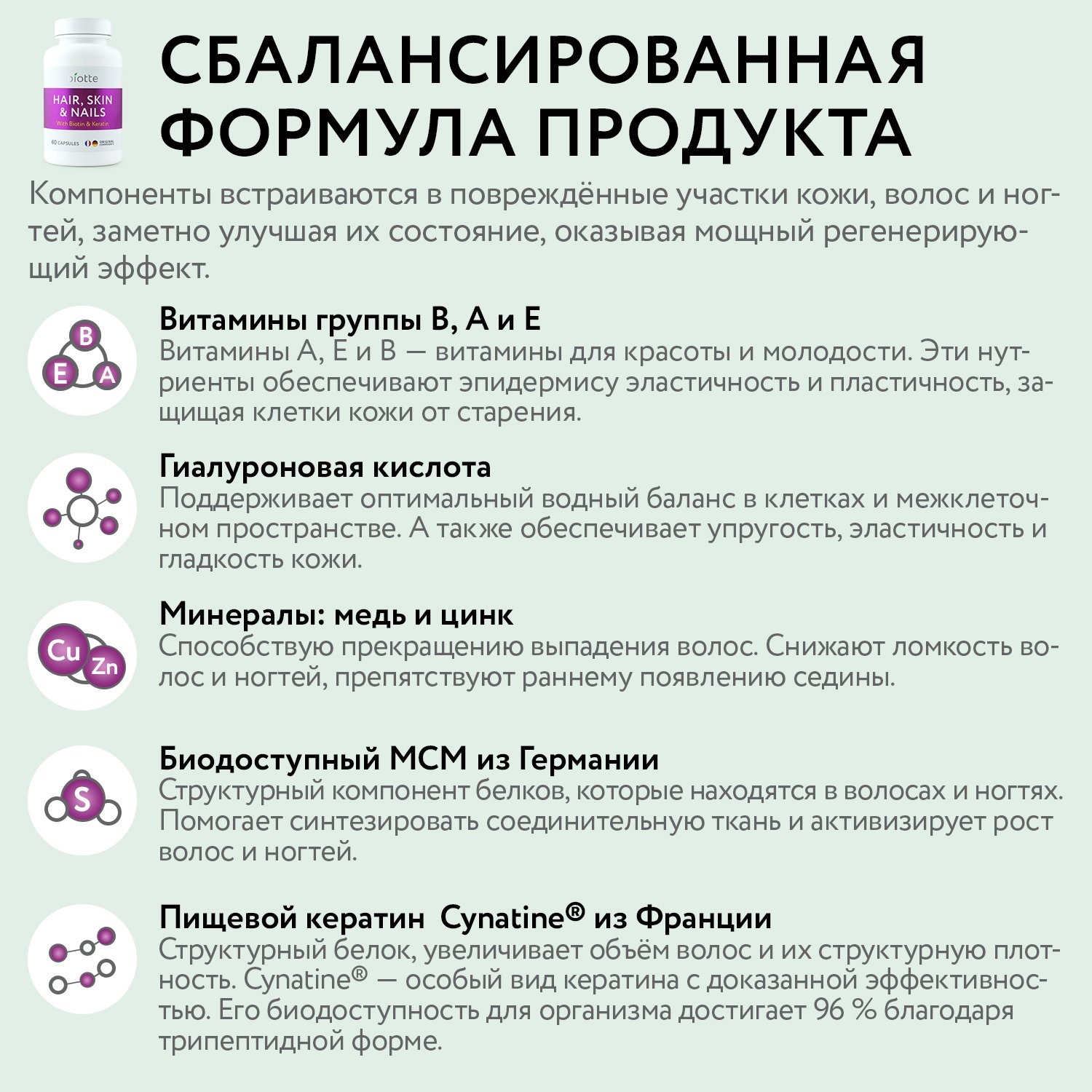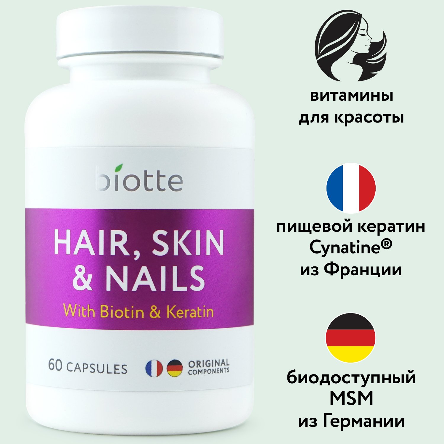 Витамины для волос кожи ногтей BIOTTE hair nails skin витаминно-минеральный комплекс для взрослых женщин и мужчин БАД 90 капсул BTYVIT_60CAP_AP