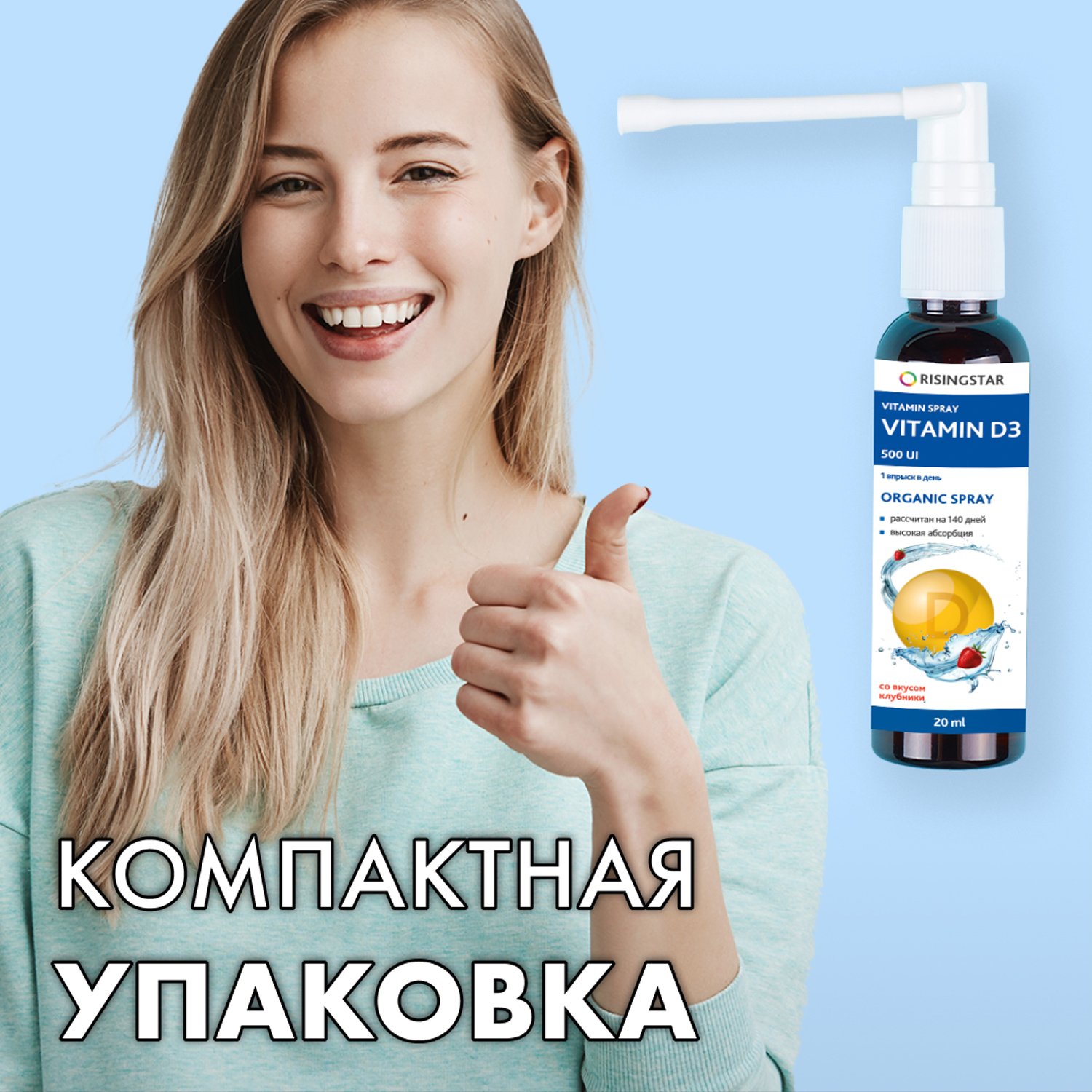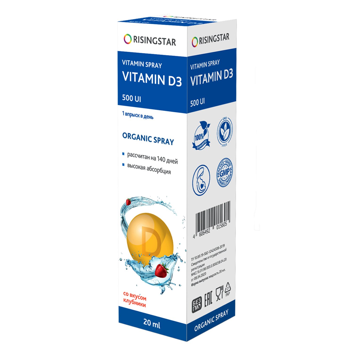 Биологически активная добавка Risingstar Витамин Д3 МЕ 500 Иммуно Клубника 20мл 15761593
