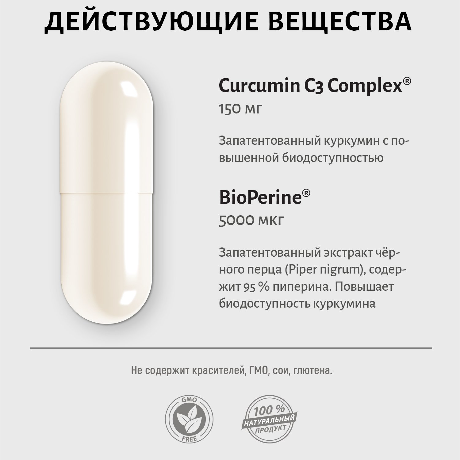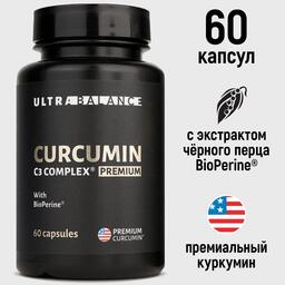 Куркумин с пиперином премиум UltraBalance премиальный витаминный комплекс с биоперином Curcumin C3 complex BioPerine БАД 60 капсул CURCUMINC3_60CAP_RT
