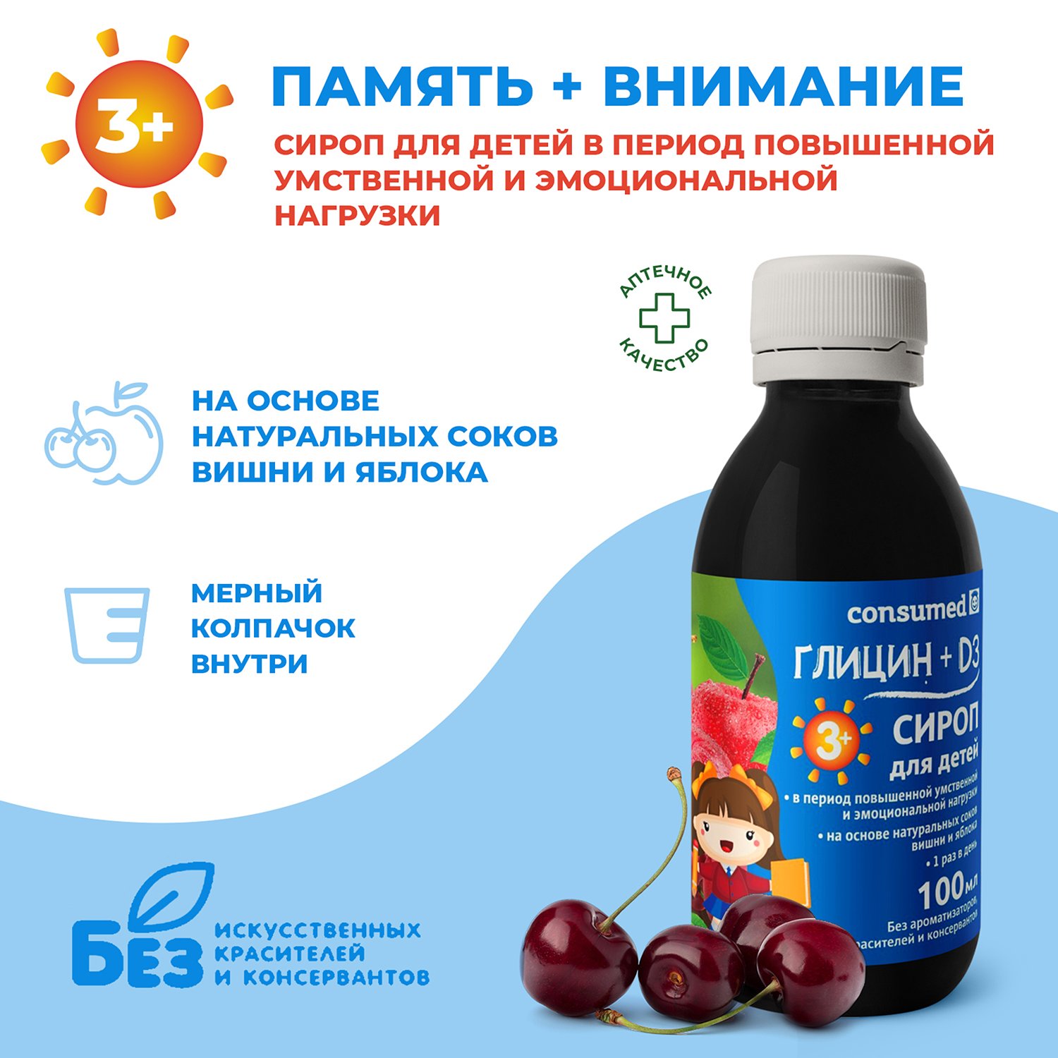Биологически активная добавка Consumed Глицин +D3 сироп для детей 3+ 100мл ИР074611