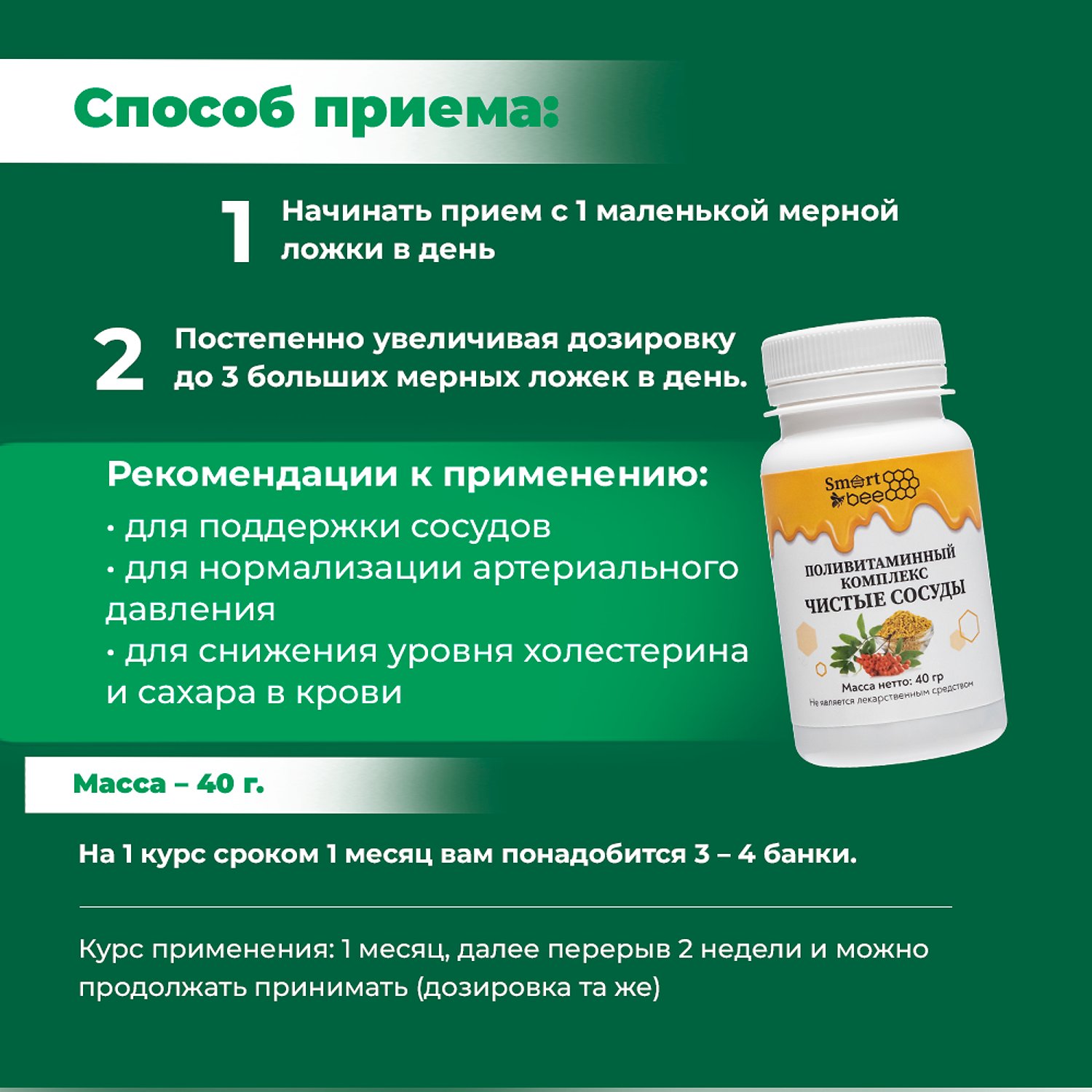 Поливитаминный комплекс Smart Bee чистые сосуды 40 гр SB228032