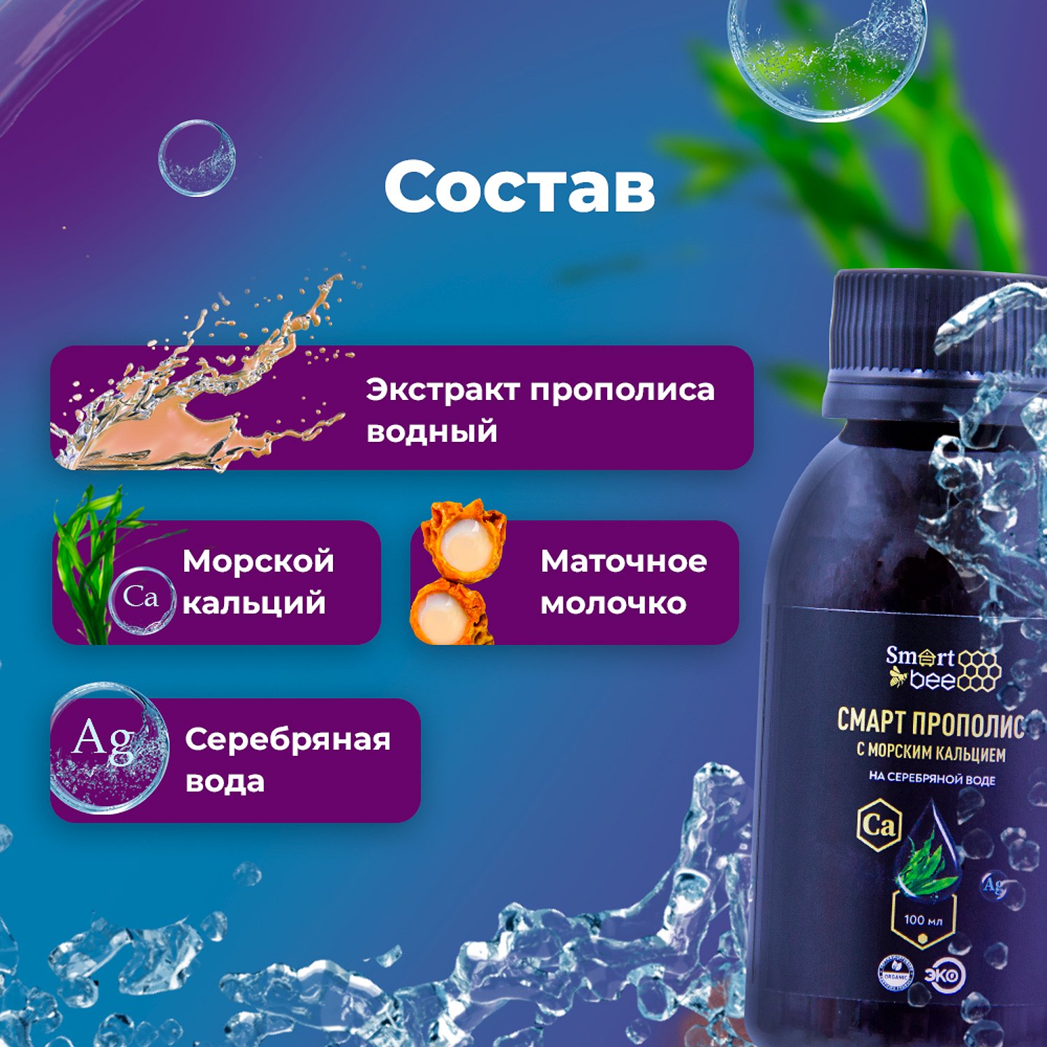 Смарт Прополис Smart Bee с морским кальцием на серебряной воде 100 мл SB228107