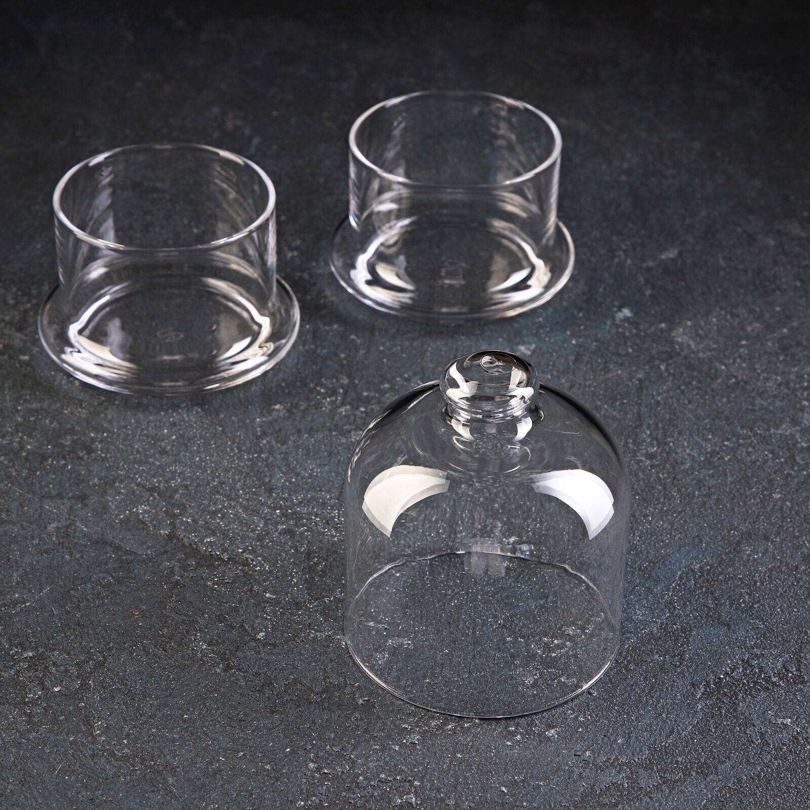 Набор ёмкостей выполнен из качественного и прочного стекла, имеет удобную крышку с ручкой. Такие баночки подойдут для хранения сахара, мёда, варенья, конфет. Их можно использовать на кухне в хранении, а также на праздничных обедах и ужинах. Ёмкости вставляются друг в друга, поэтому экономят место.