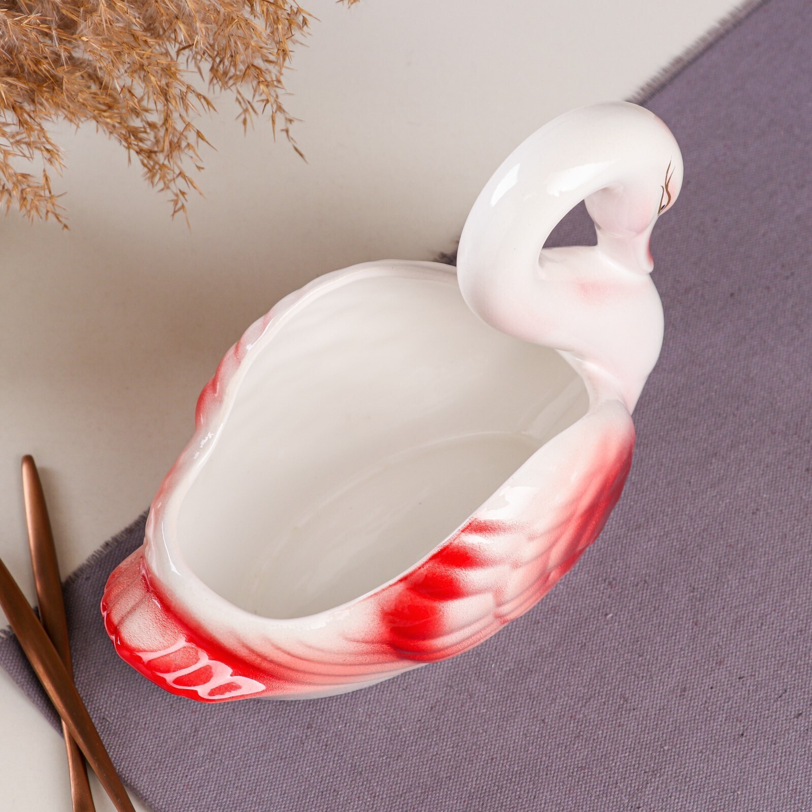 Конфетница "Лебедь", белая, керамика, 19 см, микс