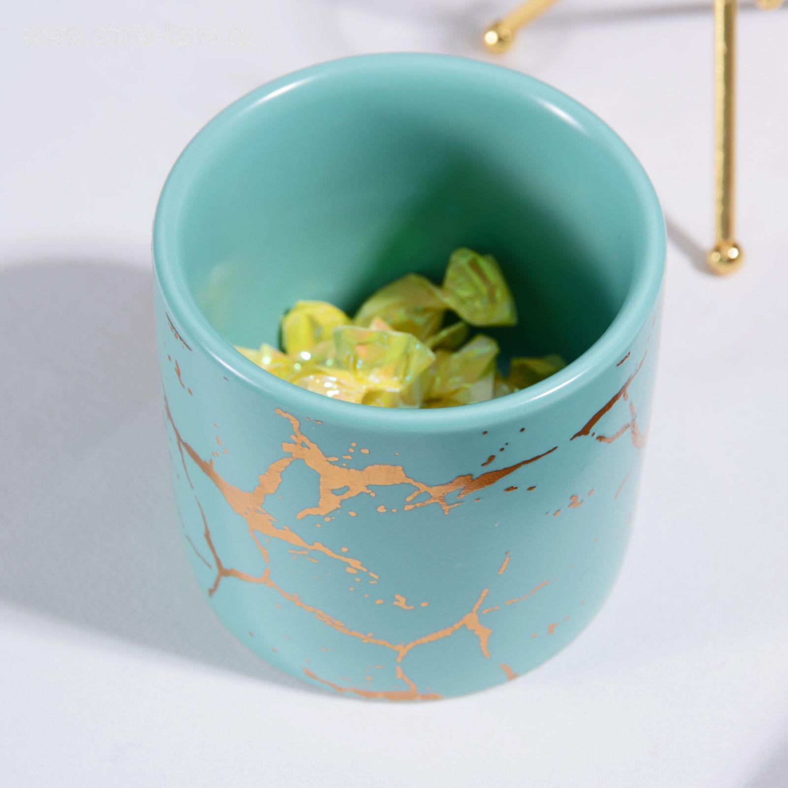Конфетница на декоративных ножках пригодится на торжественном застолье и тихом семейном чаепитии. Ёмкость конфетницы выполнена из керамики, а металлическая ножки окрашены в тёплый золотистый цвет. Вазочку можно использовать не только для конфет, но и для мармелада, орехов, сухофруктов и других небольших закусок. Изделие станет оригинальным украшением праздничного стола. А если гостей соберется много, можно сервировать стол несколькими конфетницами - миниатюрная ёмкость для сладостей не займет много места.