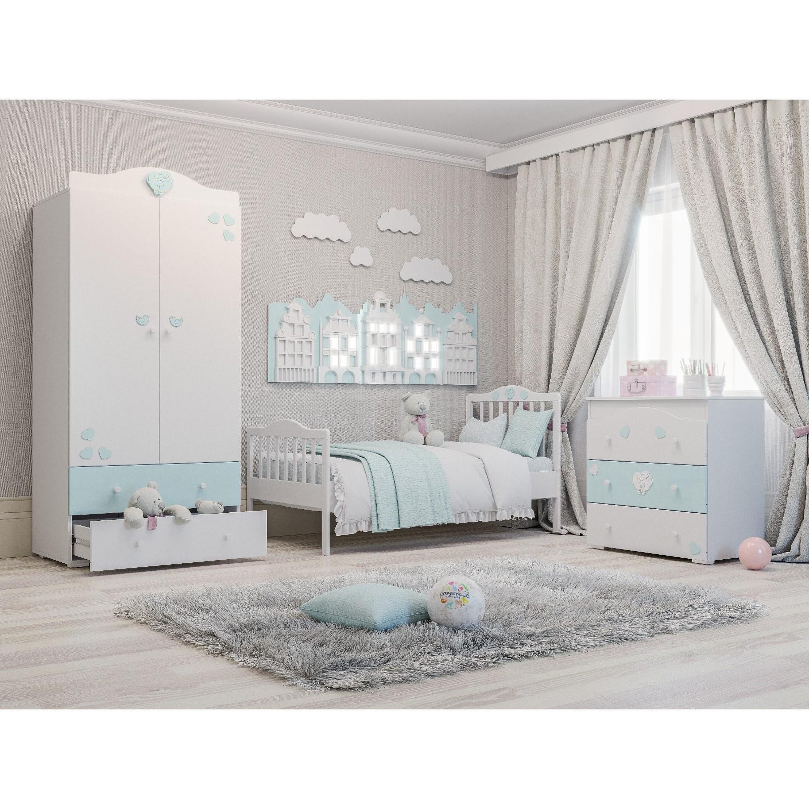 Комод Лилу, Птички, 820x460x816, Белый/Голубая эмаль