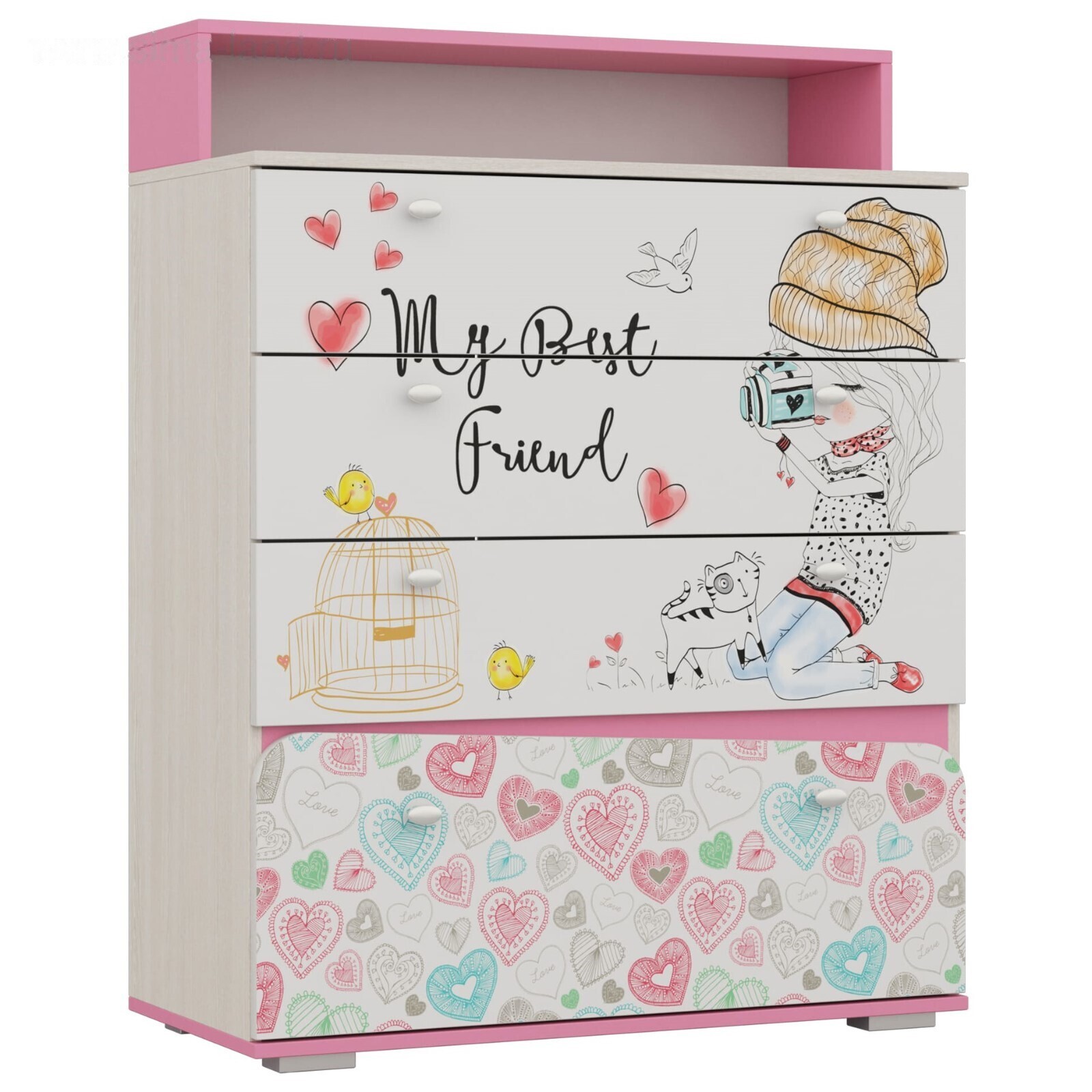 Комод для детской Алиса 1170х900х420 Белый/корпус Ясень Анкор Белый/ Розовый