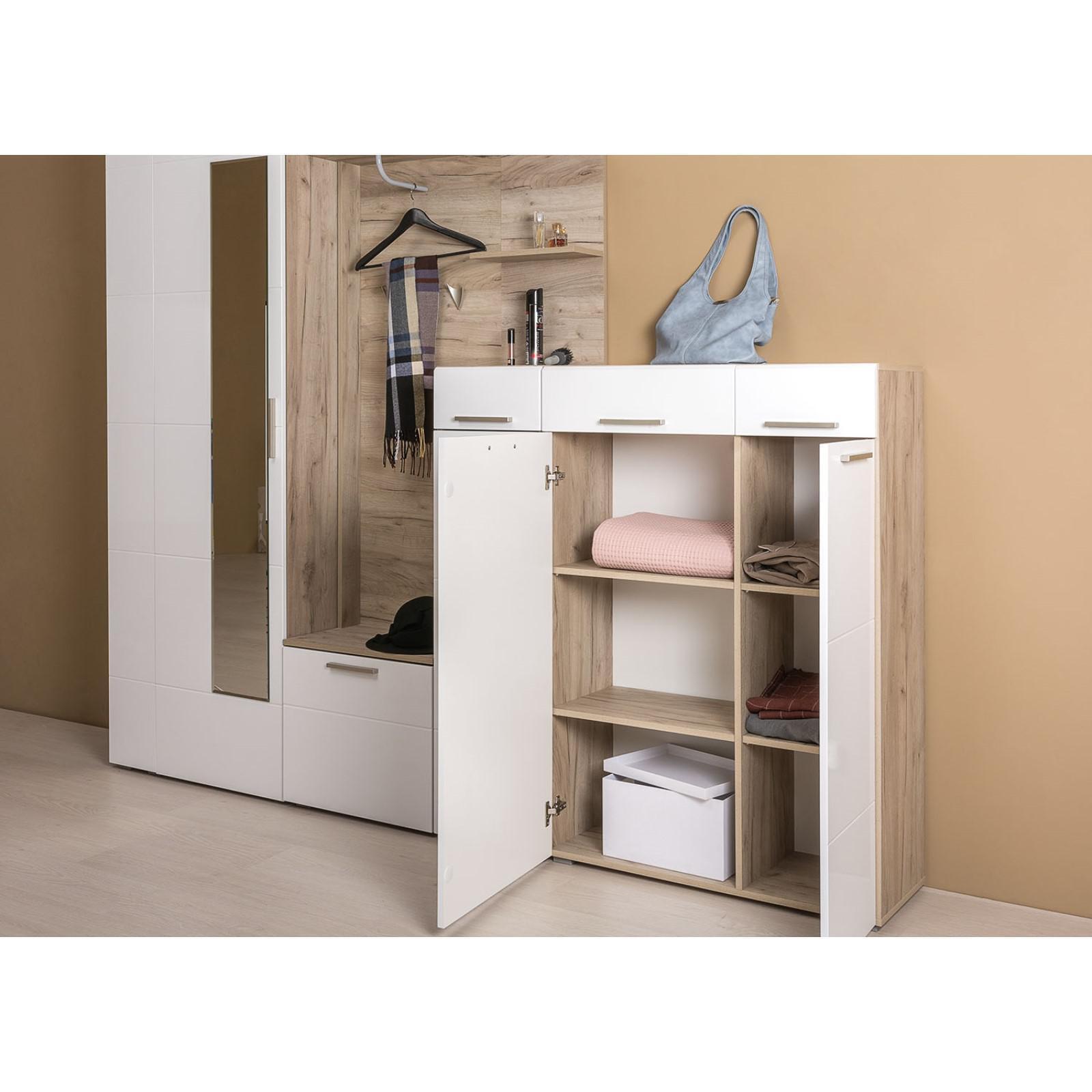 Комод Лайн 13.121, 900х350х1292, Дуб серый Крафт/Белый глянец