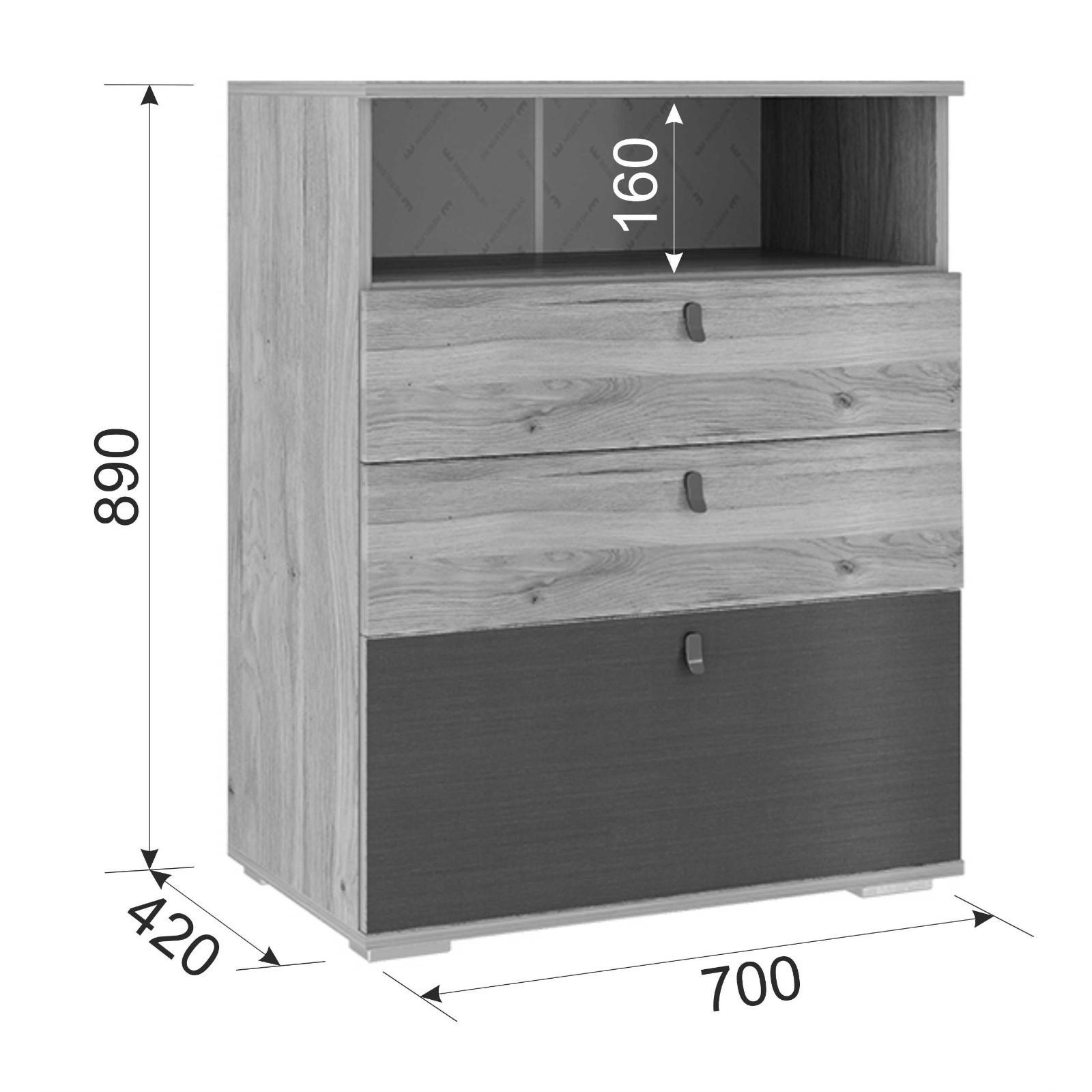Комод «Модерн 27.01», 700 × 420 × 890 мм, цвет дуб мария / бронза