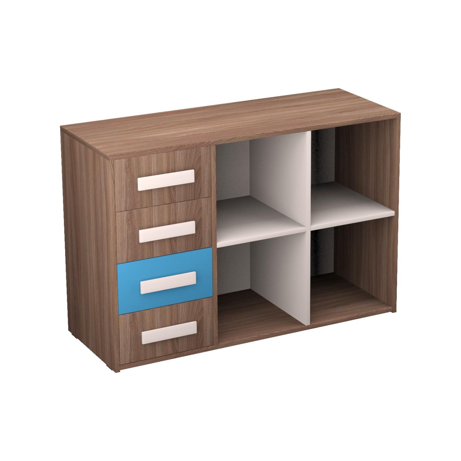 Тумба Юниор левая 4 ящика 1056х400х714 Ясень шимо темный/Белая Аляска/Индиго