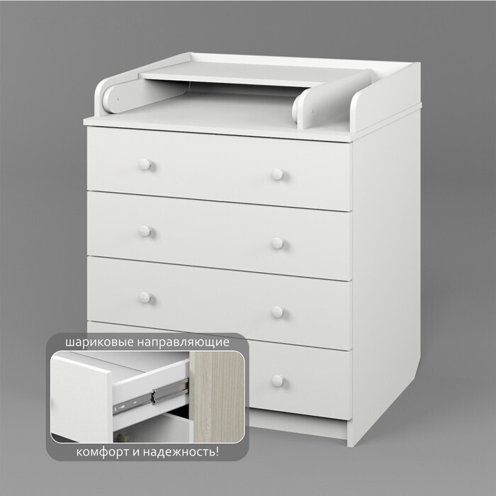 Комод детский с пеленальным столиком «Сириус-2 804 ЛДСП», 4 выдвижных ящика, шариковые направляющие, цвет белый