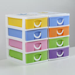 Пластиковый предмет мебели предназначен для хранения мелочей, принадлежностей для шитья, творчества и других аксессуаров. Изделие оснащено выдвижными ящиками с ручками.