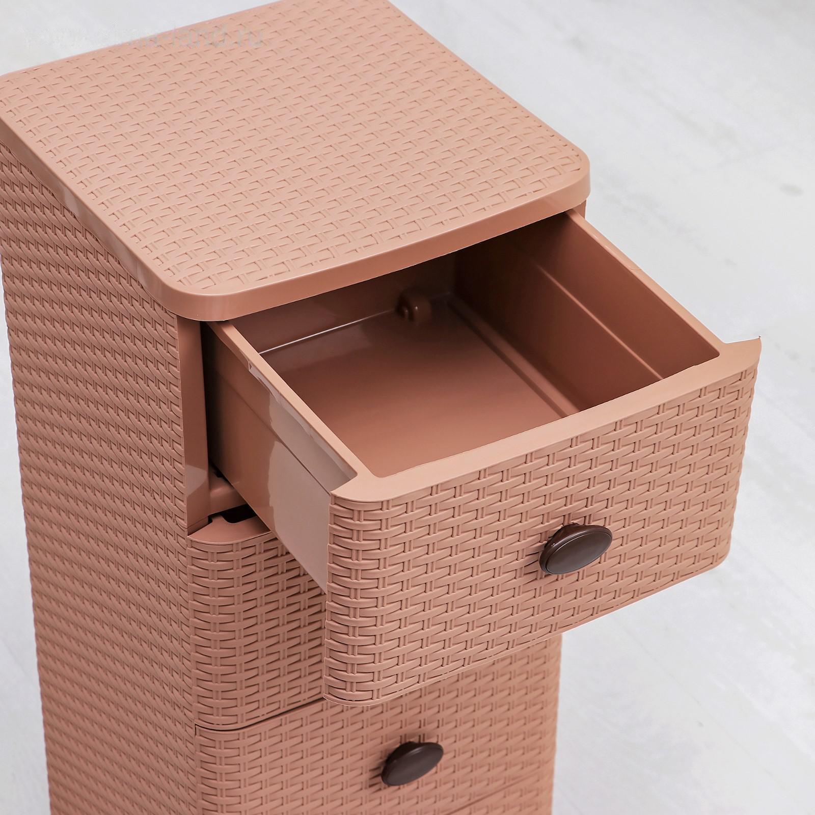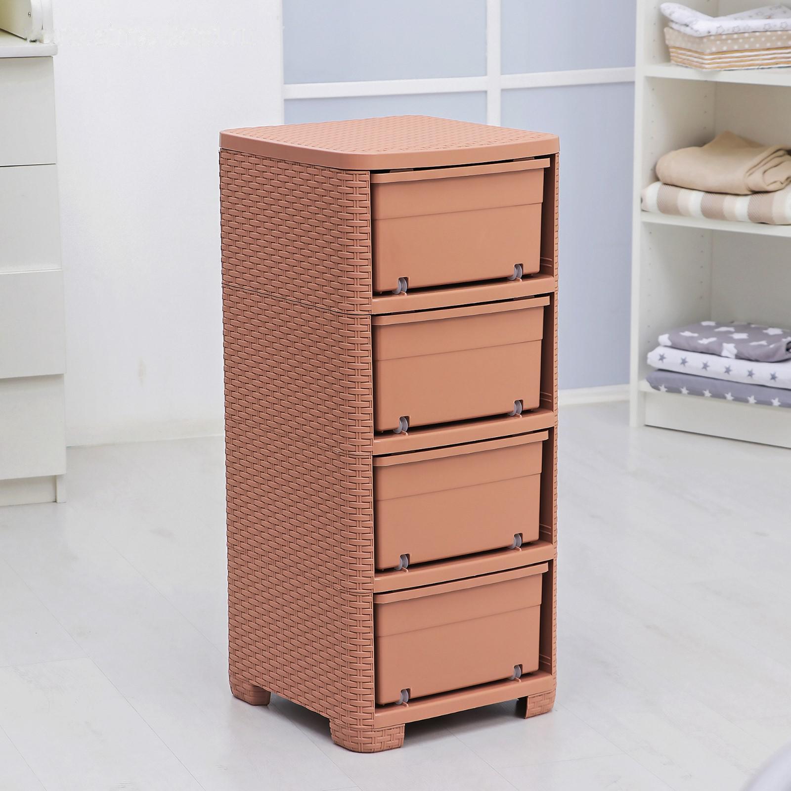 С помощью практичного пластикового комода вы правильно организуете хранение вещей. Изделие имеет жёсткую конструкцию за счёт цельных боковых стенок. Отсутствие острых углов делает его безопасным для ребёнка. Комод изготовлен из экологически чистого материала, не содержит вредных веществ.