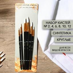 Набор кистей синтетика круглые 6 штук (№2,4,6,8,10,12)