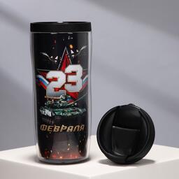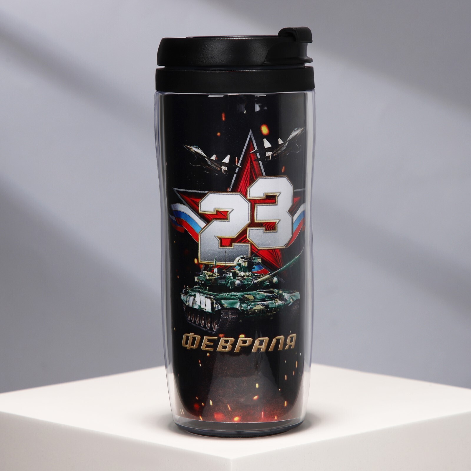 Термостакан пластиковый со вставкой "23 февраля, танк", 350 мл
