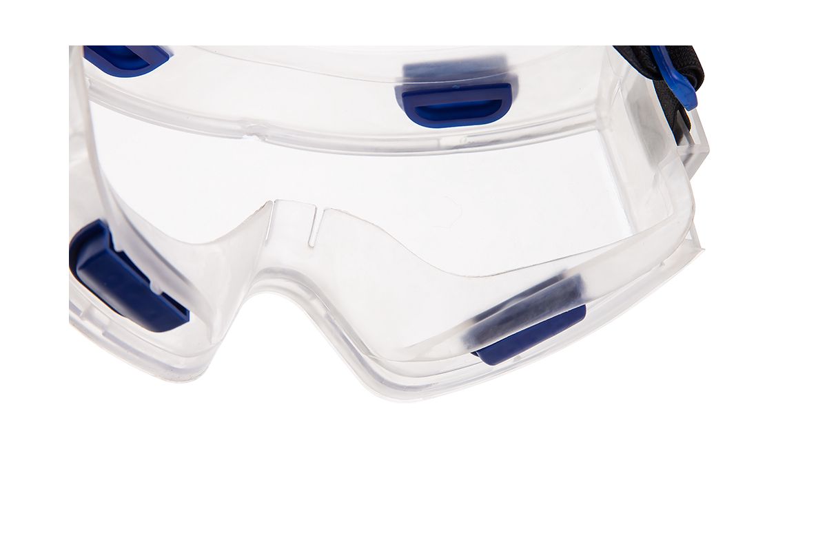 - Мягкий корпус очков отлит из ПВХ пластика с широкой полосой обтюрации.