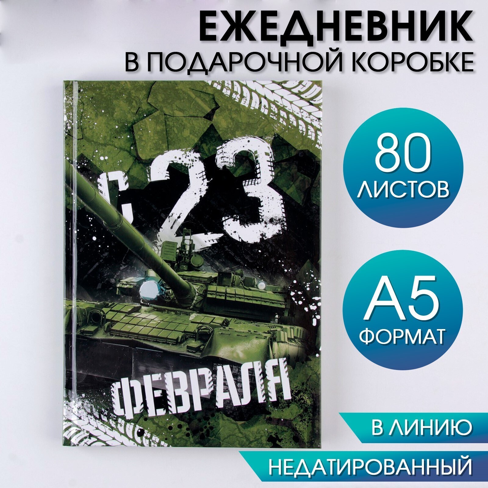 Ежедневник в подарочной коробке «С 23 февраля» 80 листов, А5