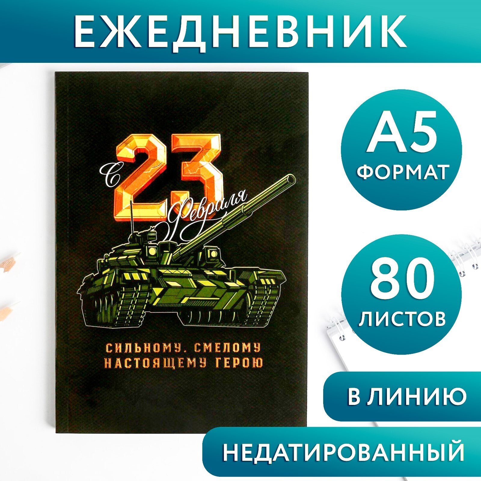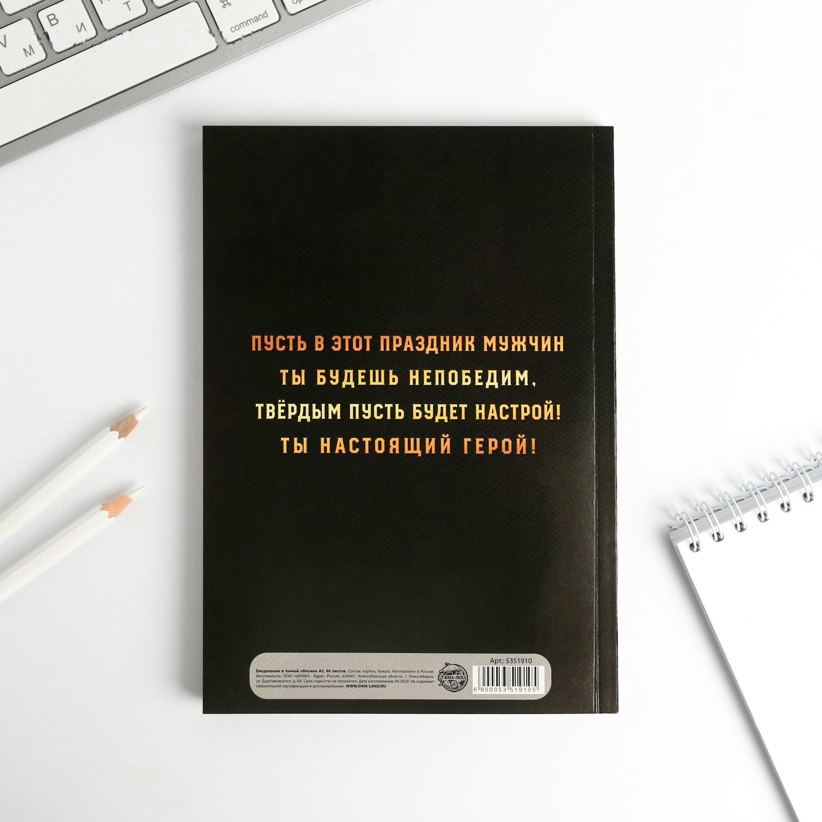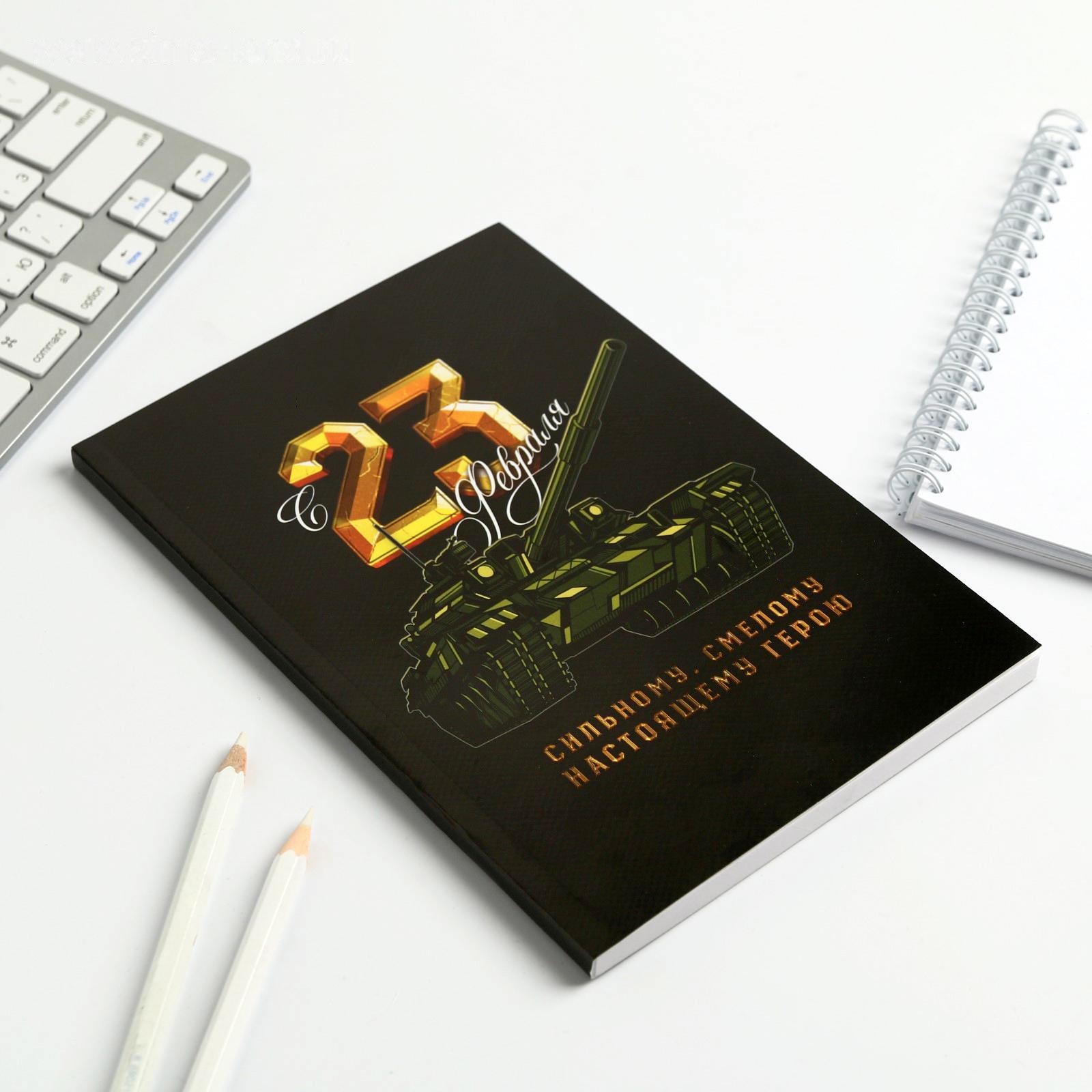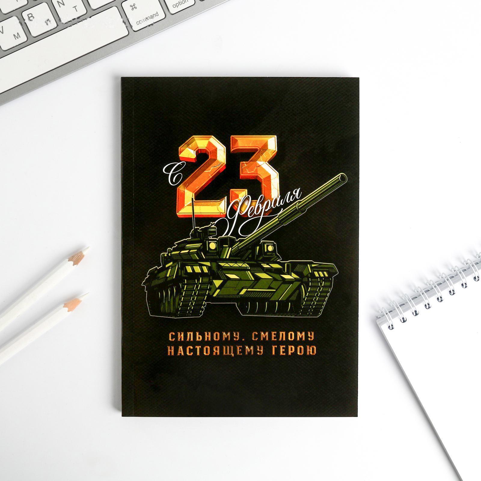 Ежедневник в тонкой обложке "23.02 ТАНК" А5, 80 листов