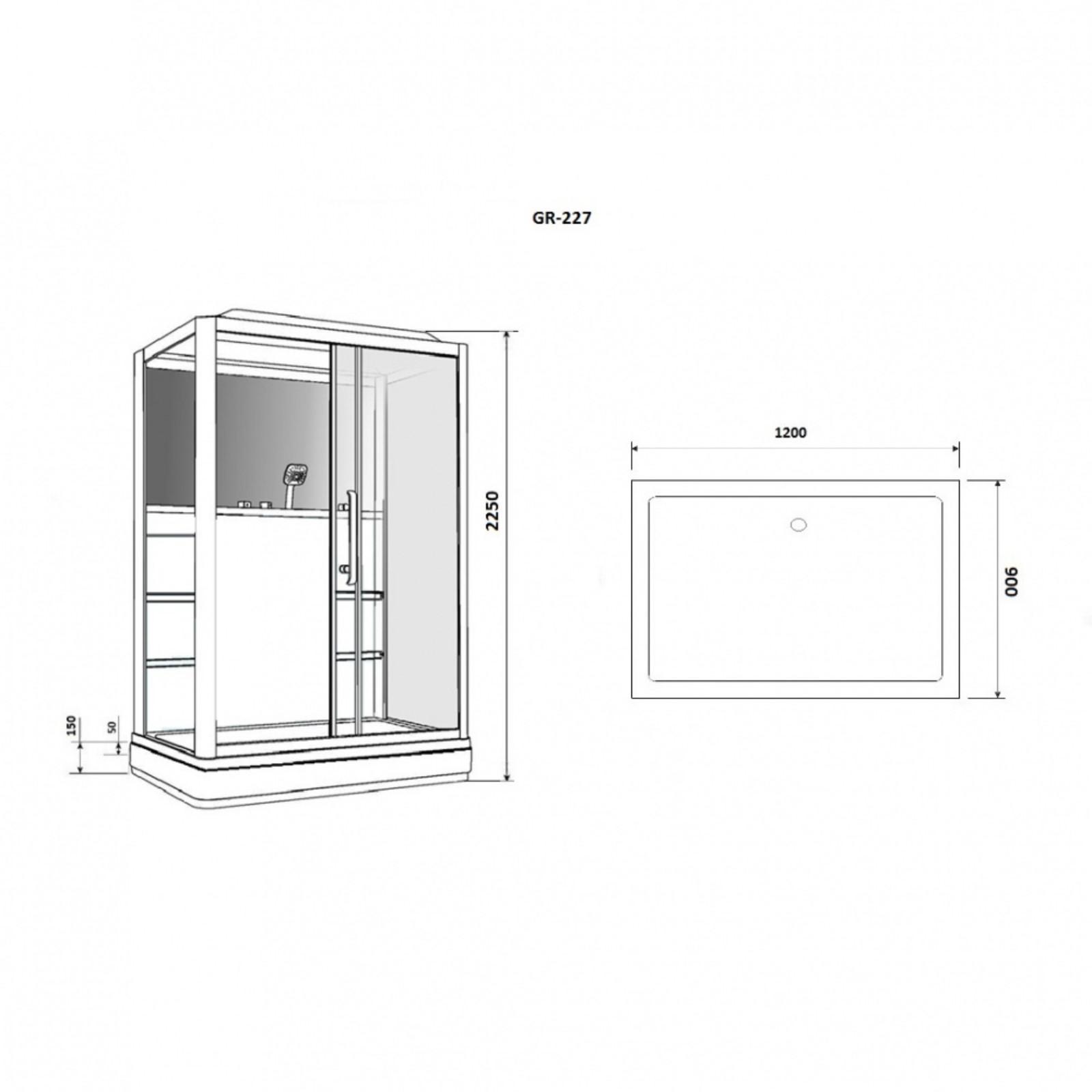 Душевая кабина GROSSMAN GR227L, 90x120x225 см, низкий поддон 15 см, стекло прозрачное