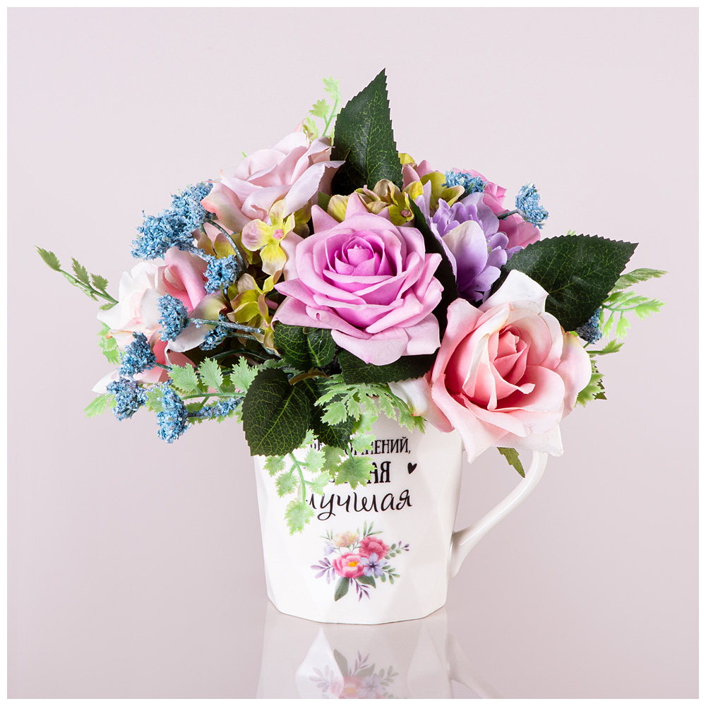 ЦВЕТОЧНАЯ КОМПОЗИЦИЯ В КРУЖКЕ "САМАЯ ЛУЧШАЯ" ШИРИНА 23 см*ВЫСОТА 19 см- БЕЗ УПАКОВКИ 23-2336