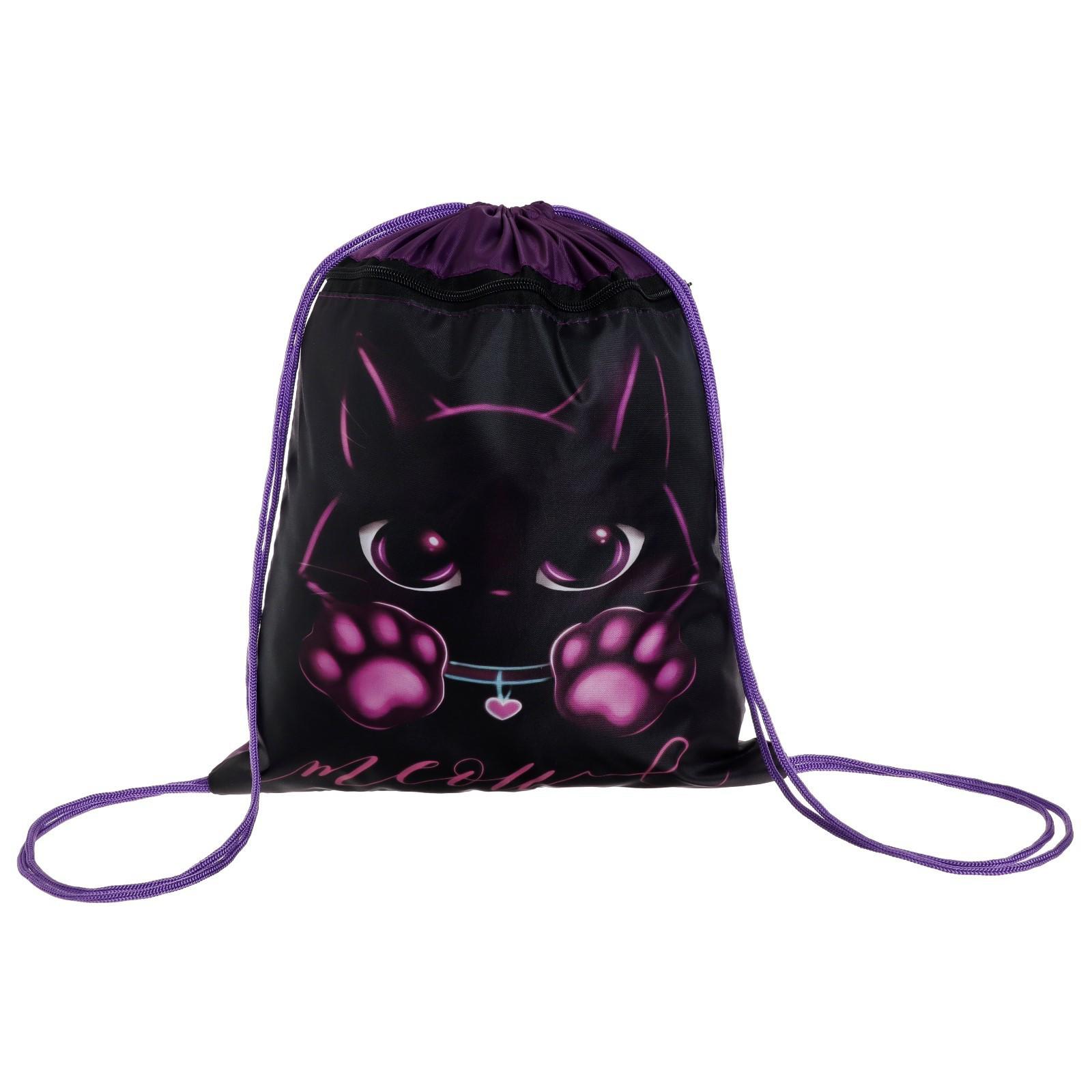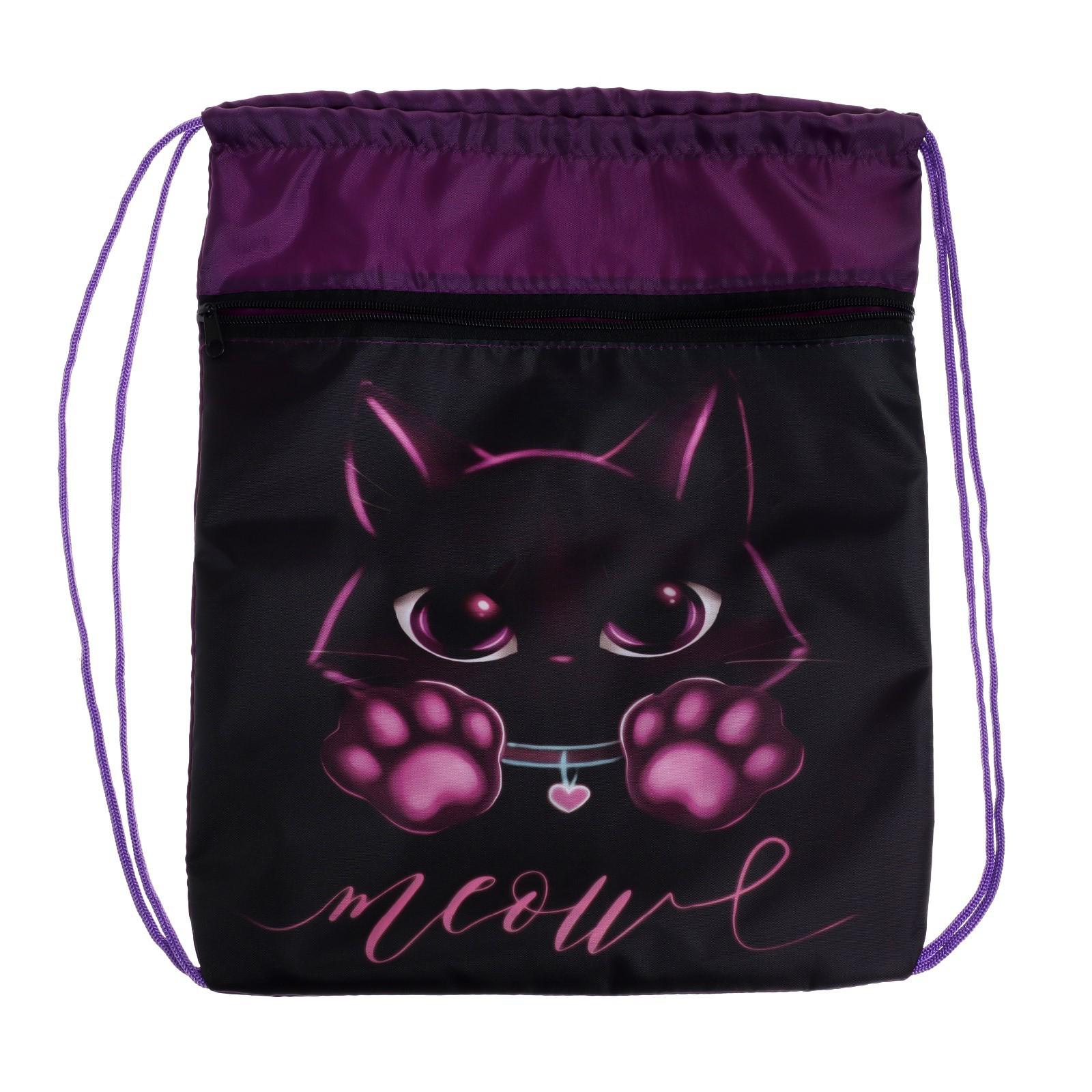 Мешок для обуви с карманом 420 х 340 мм, Calligrata МСО-7С, (мягкий полиэстер, плотность 210D), "Котик"