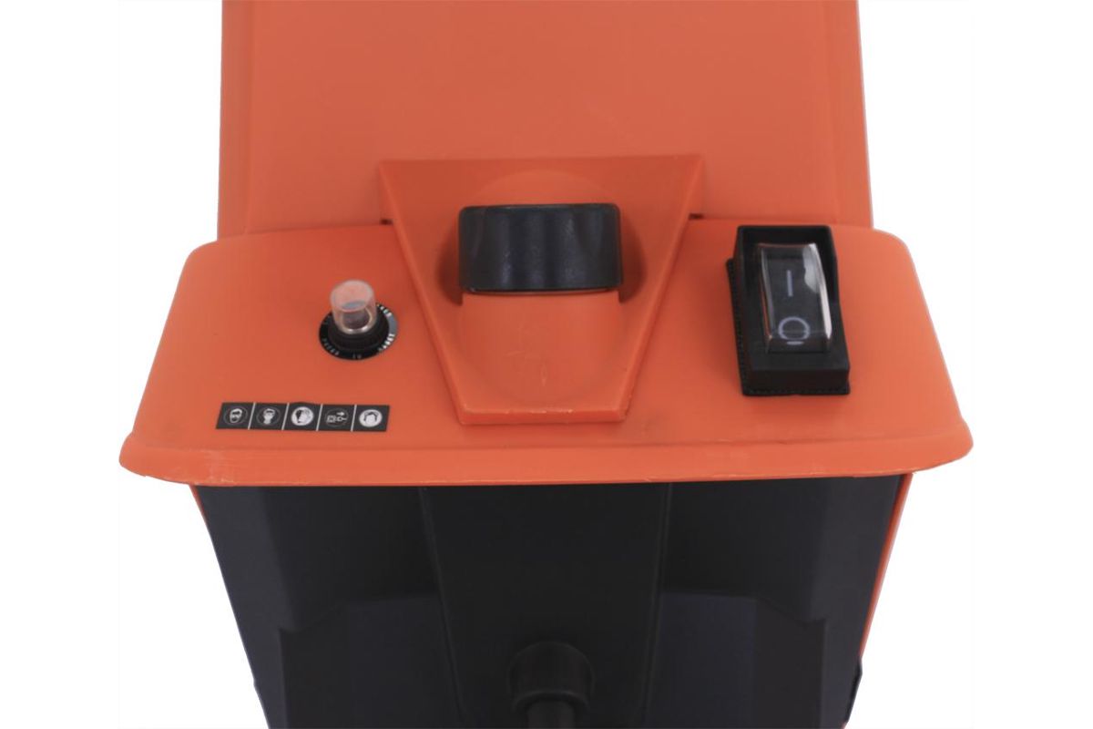 Измельчитель веток КАЛИБР ЭСИ-2400Н легко перемещается благодаря двум широким колёсам. Ручка служит для простого управления.