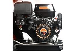 Рукоятка и крупные колёса с протектором упрощают перемещение. Агрегат весом 190 кг удобно перевозить по участку.