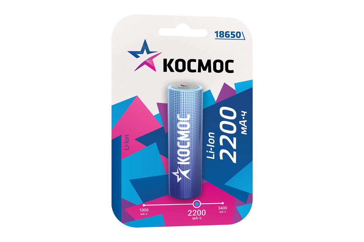 Аккумулятор КОСМОС 18650 LI-ion 2200 mAh 1BL б/защиты (уп. 1шт)